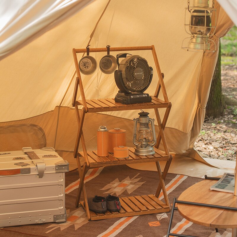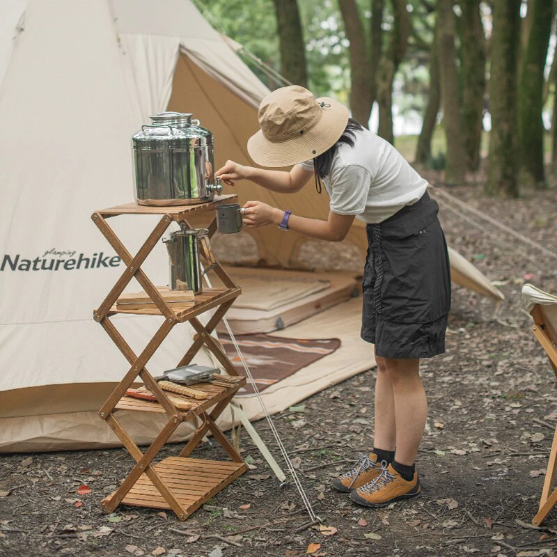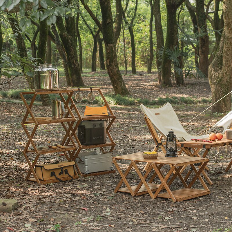 This beautiful, wooden folding table doubles as a 4 tiered shelf making it perfect for your next outdoor camping adventure.