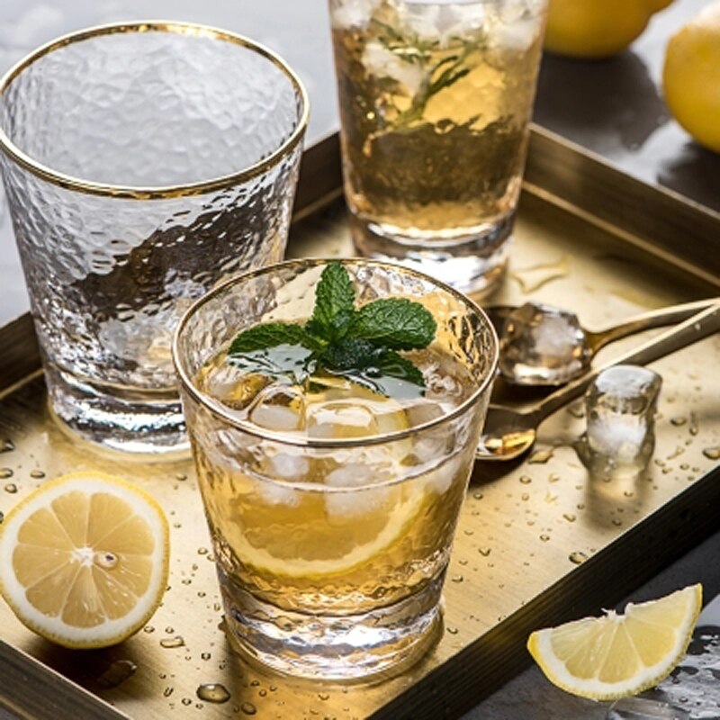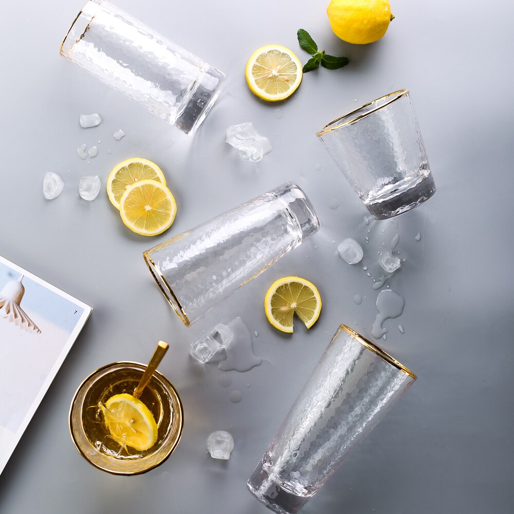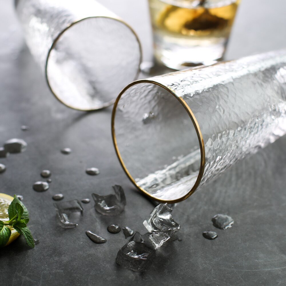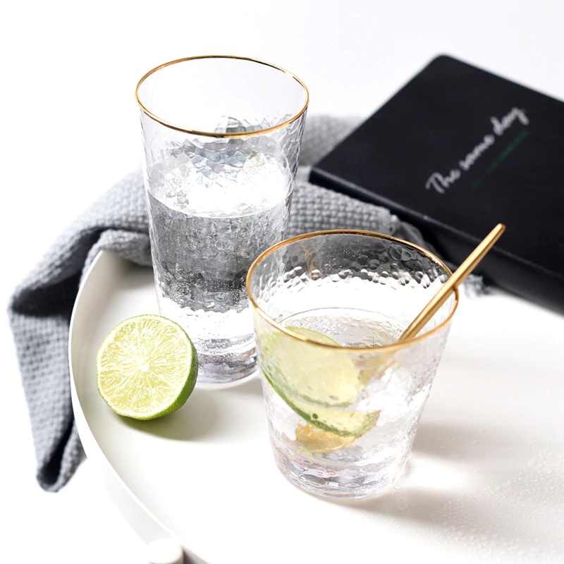 Elegant and unique, these drinking glasses are perfect for serving cocktails in or even for holding makeup brushes, toothbrushes in your bathroom, stationery and loose ends. Made of high-quality glass, the frosted and matte finish is visually beautiful and the gold rim adds a classy detail. Available in different shapes and sizes, with and without the gold rim and with 350ml or 400ml capacities. Available individually or in packs of 4.