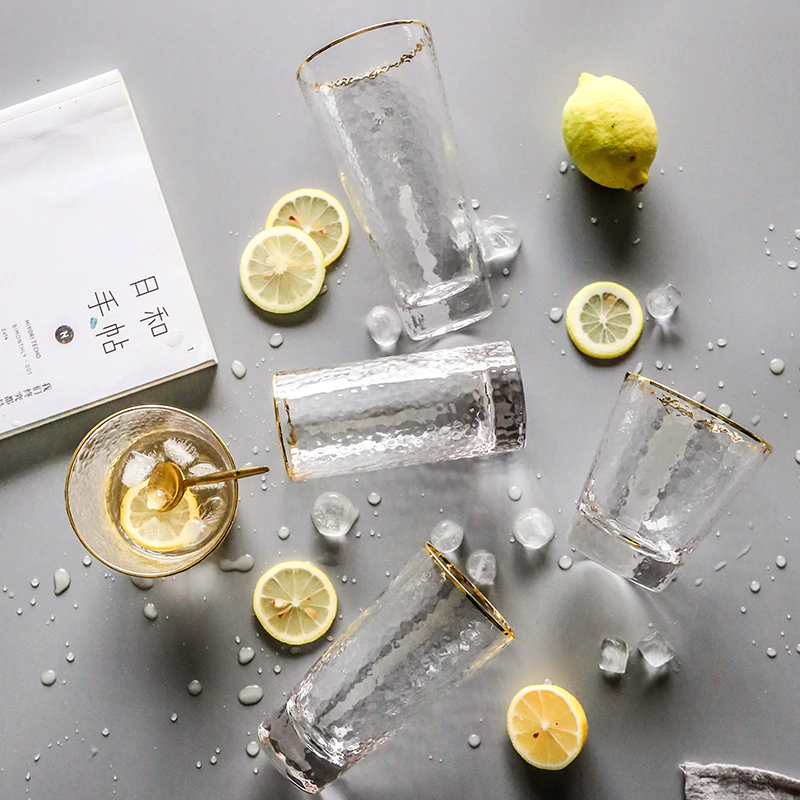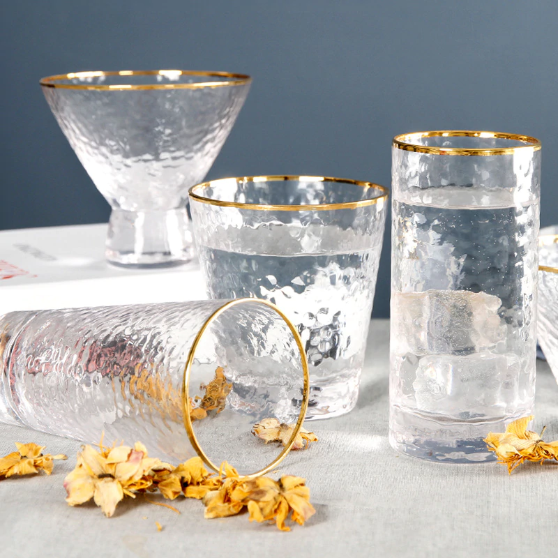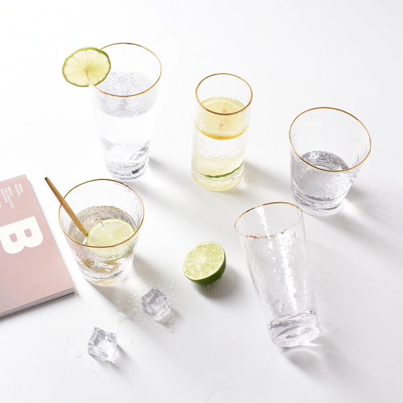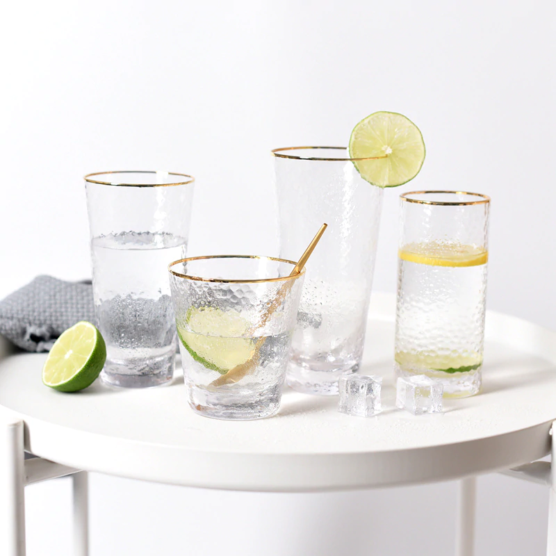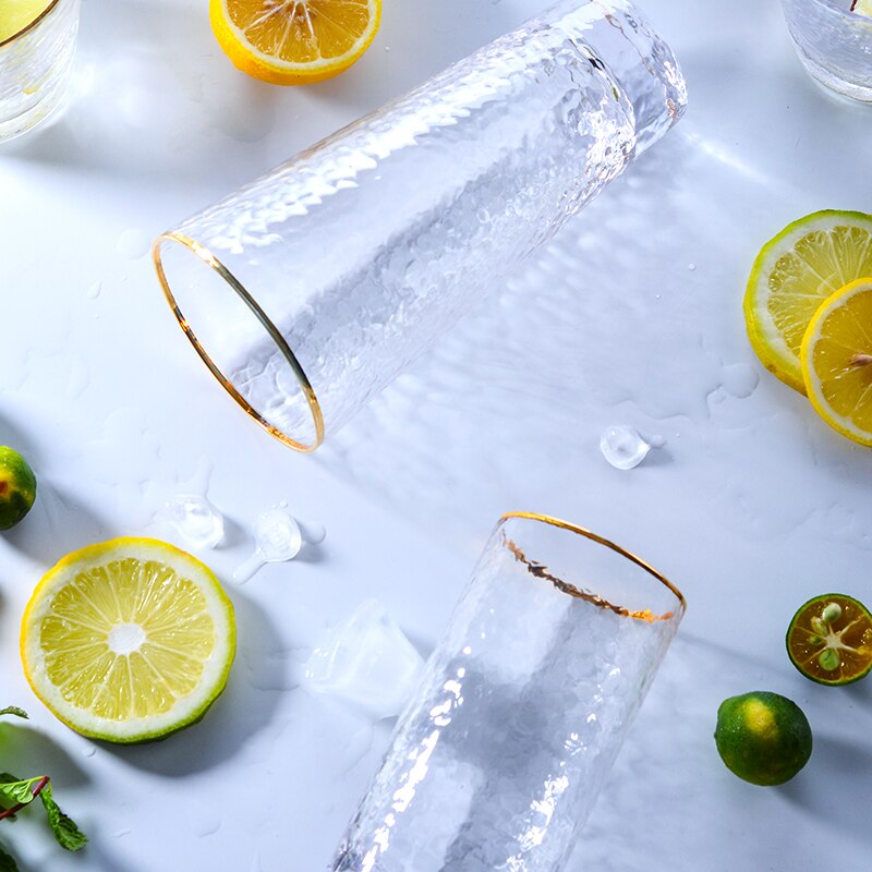 Elegant and unique, these drinking glasses are perfect for serving cocktails in or even for holding makeup brushes, toothbrushes in your bathroom, stationery and loose ends. Made of high-quality glass, the frosted and matte finish is visually beautiful and the gold rim adds a classy detail. Available in different shapes and sizes, with and without the gold rim and with 350ml or 400ml capacities. Available individually or in packs of 4.