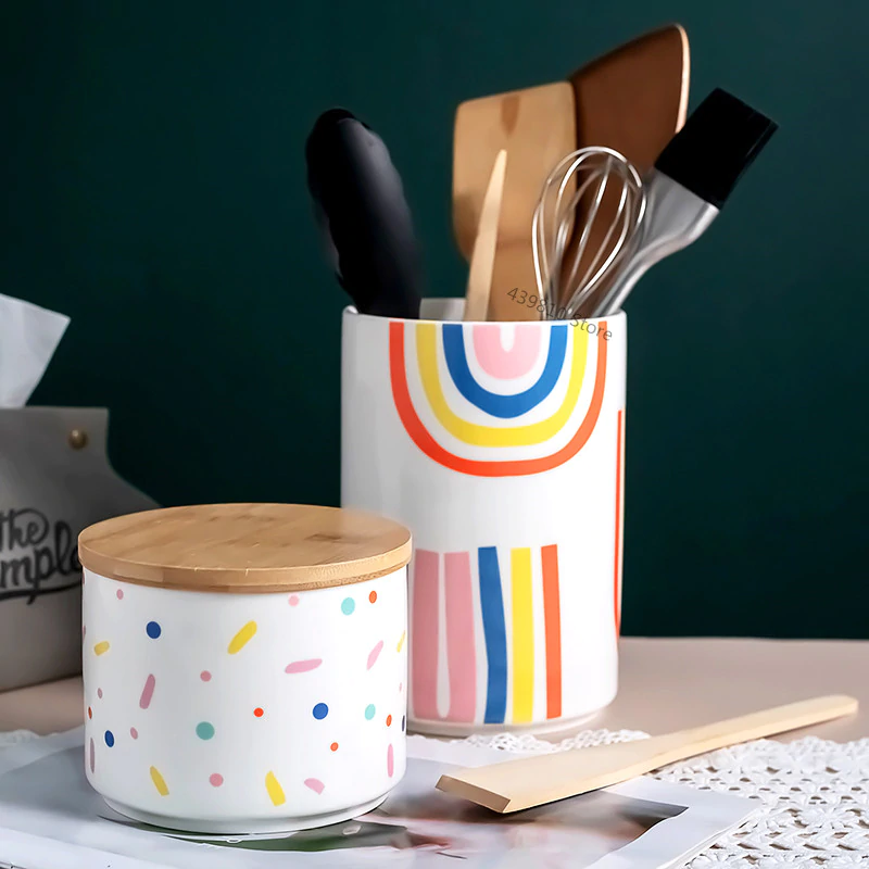 These Scandavian-design ceramic canisters are fun way to keep your kitchen organised.