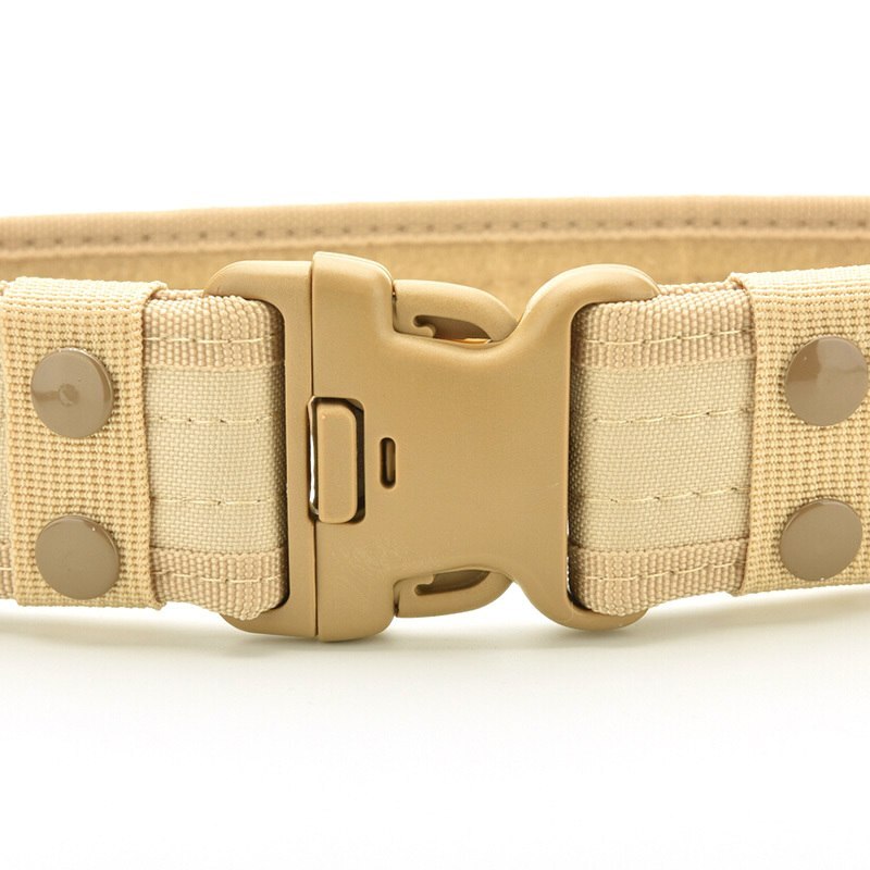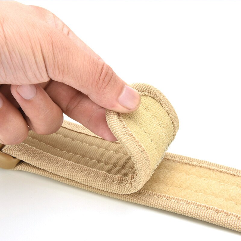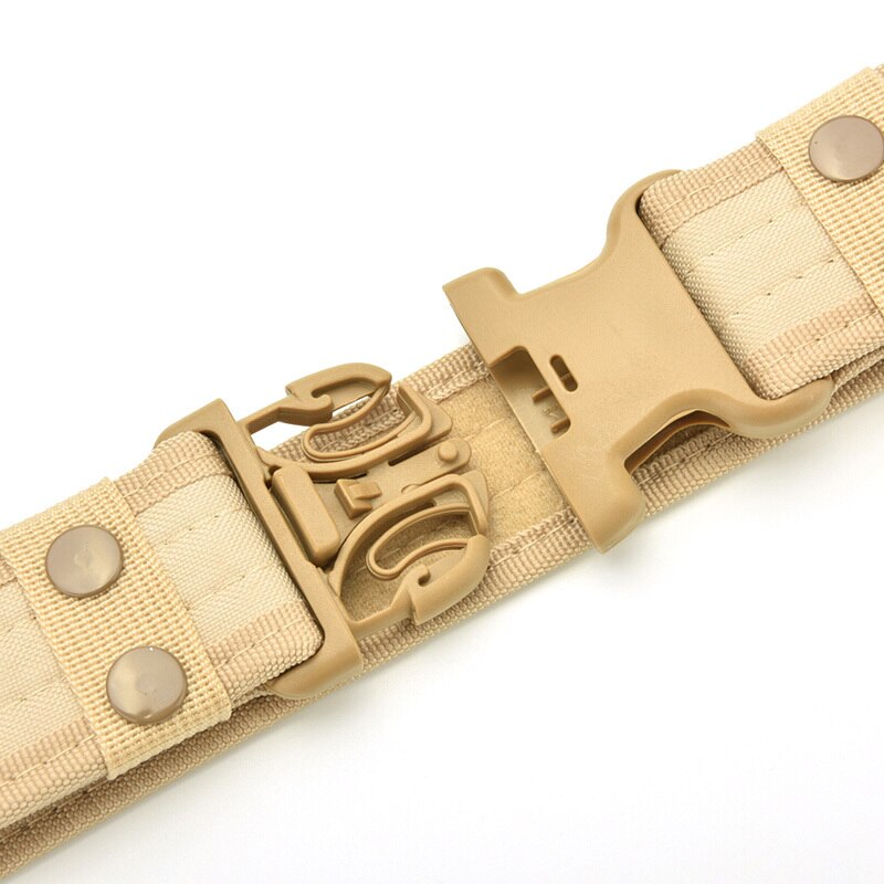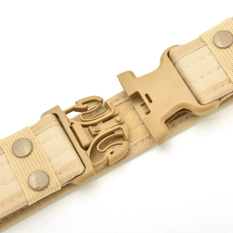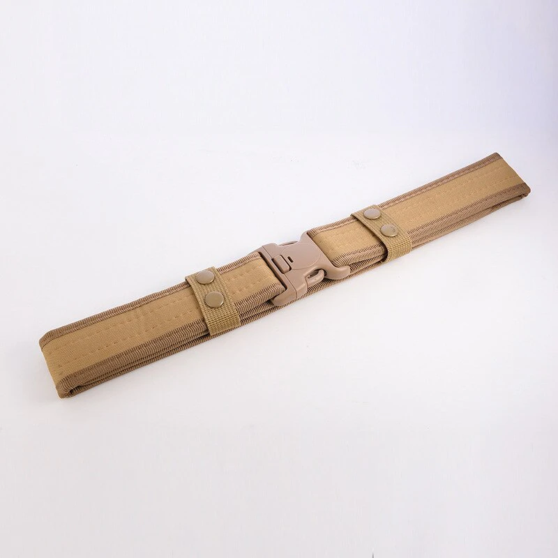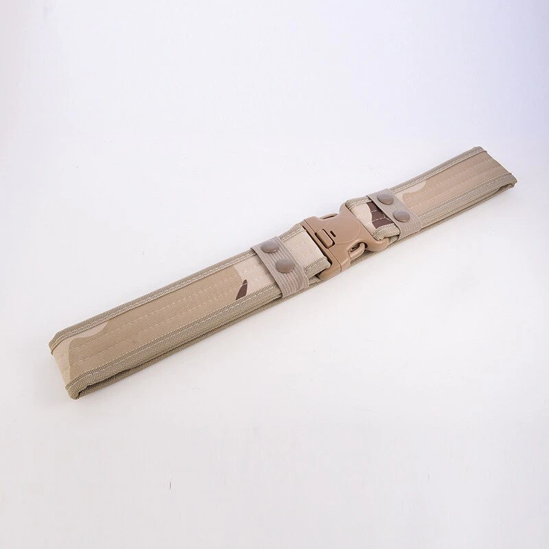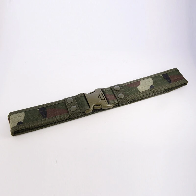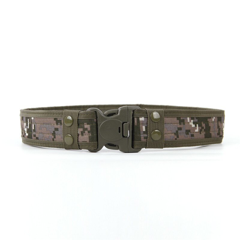 Add a utilitarian touch to your outfits with this military-inspired belt. It has a buckle for easy access and is built out of a thick and sturdy canvas. It has velcro on the interior so there's no extra length sticking out. Available in a variety of earth tones and camouflage patterns!