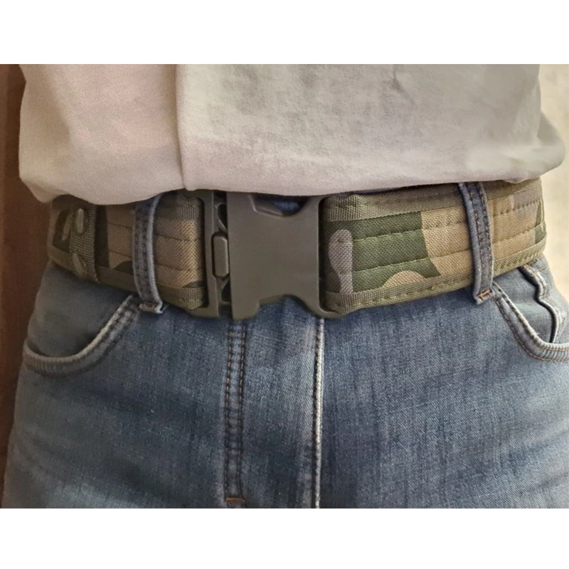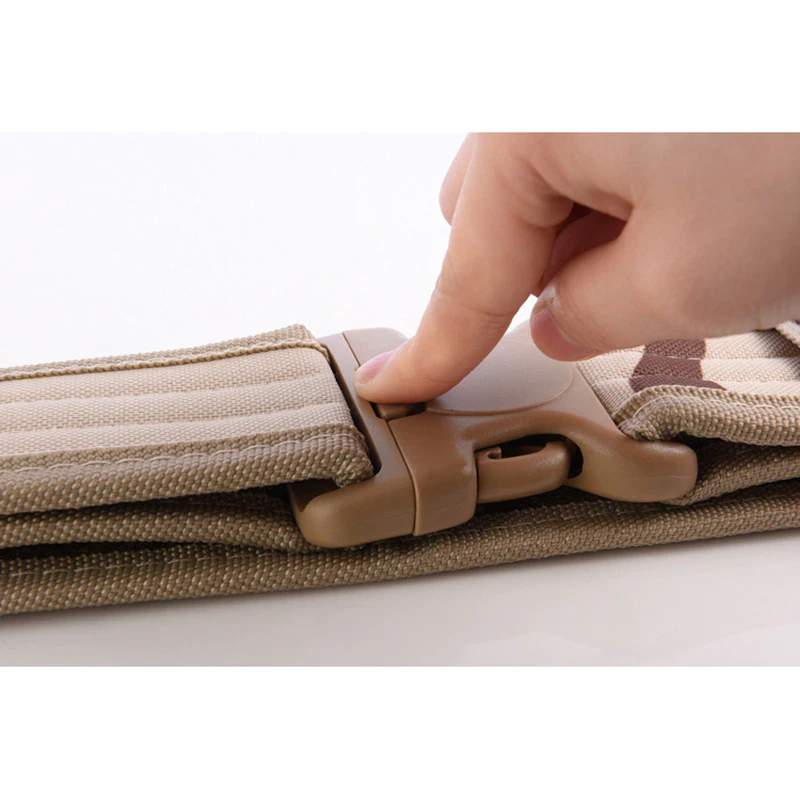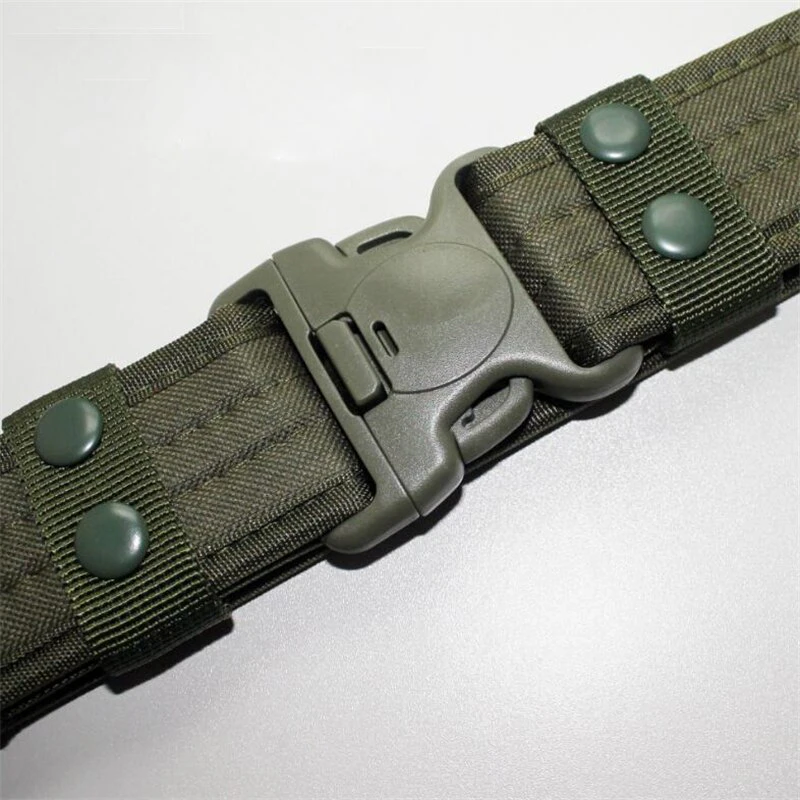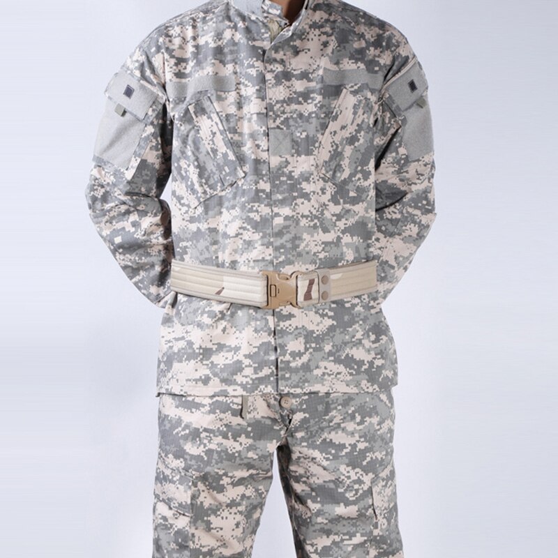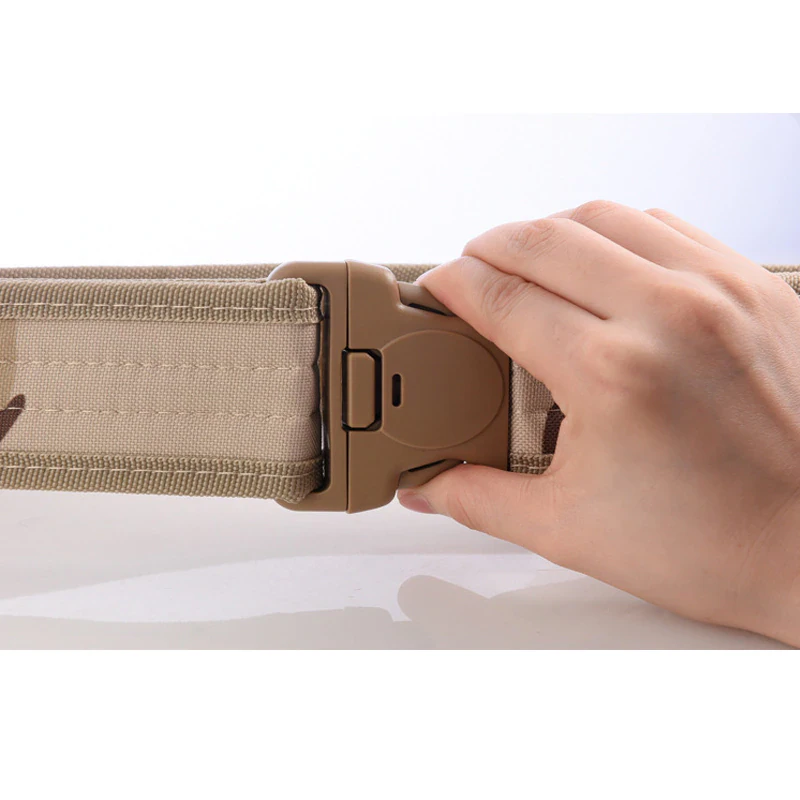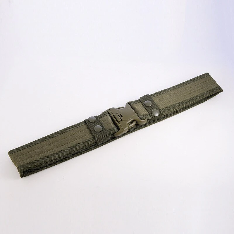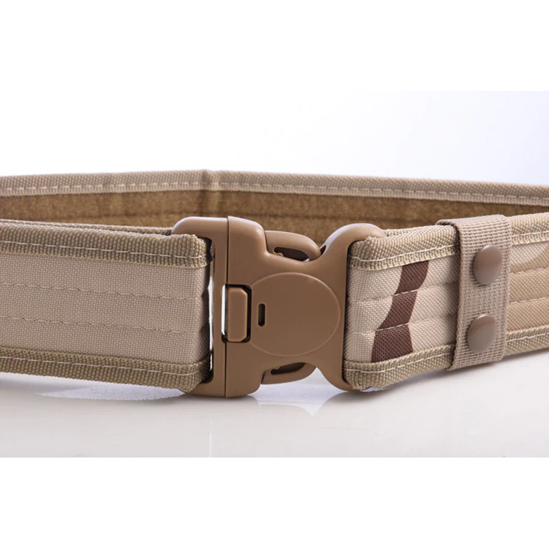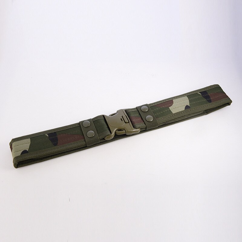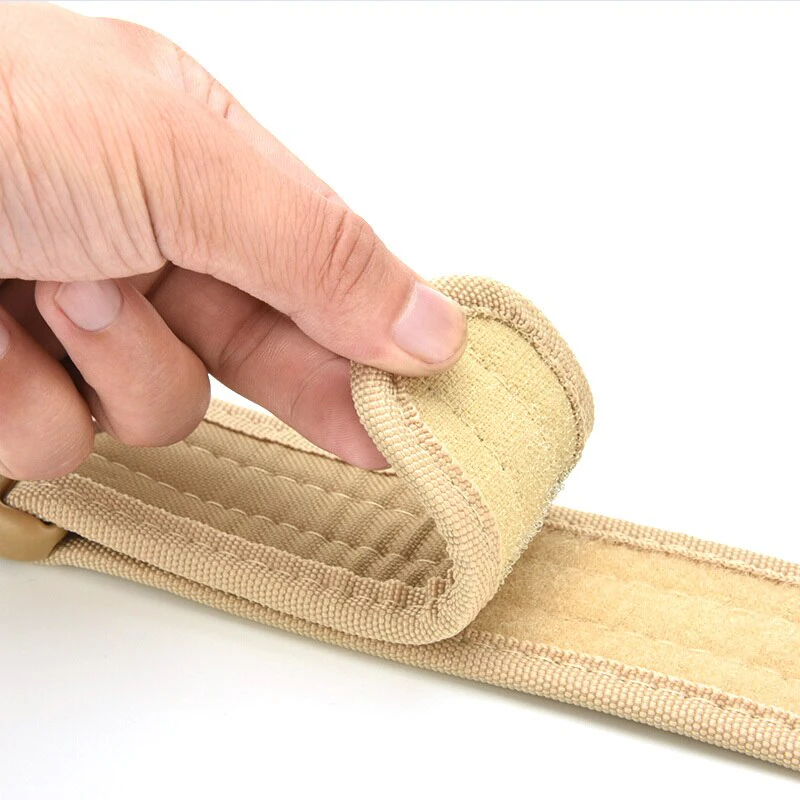 Add a utilitarian touch to your outfits with this military-inspired belt. It has a buckle for easy access and is built out of a thick and sturdy canvas. It has velcro on the interior so there's no extra length sticking out. Available in a variety of earth tones and camouflage patterns!