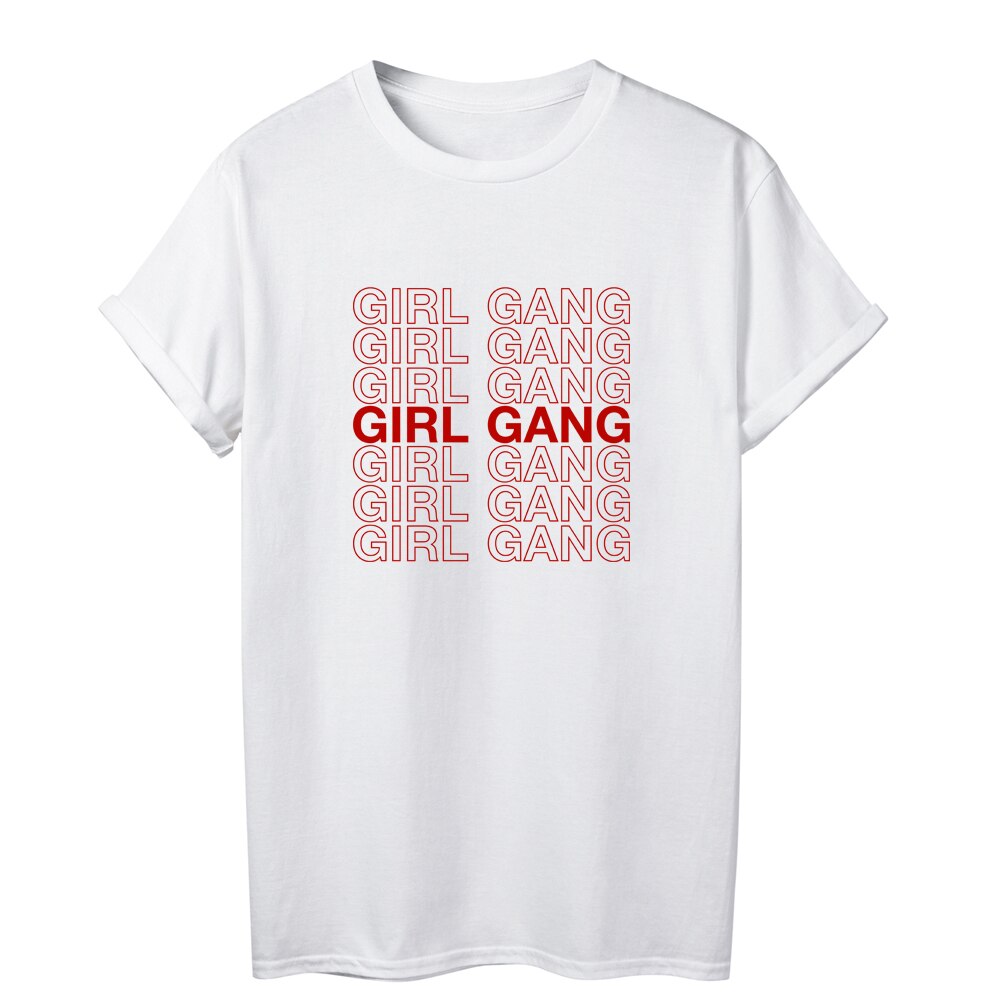 Join the best gang around and make a statement with this "girl gang" printed white tee.