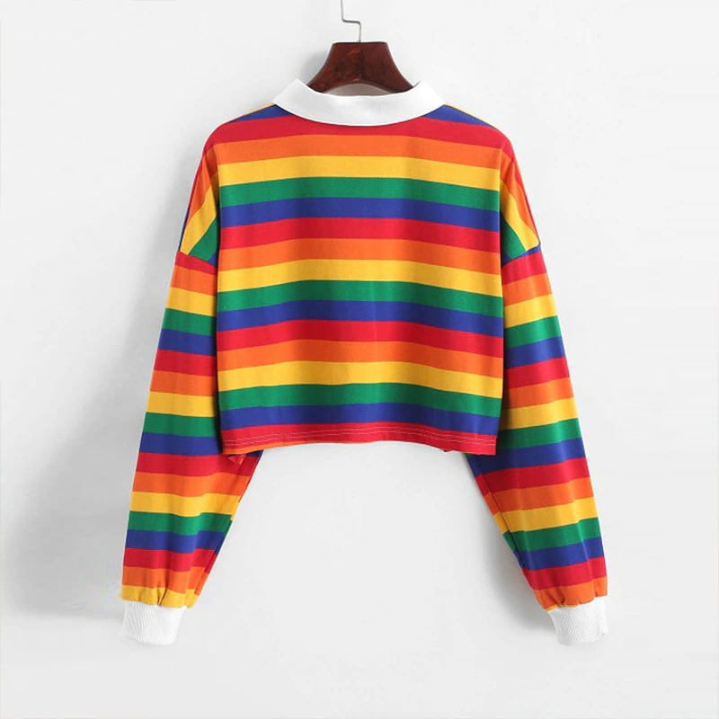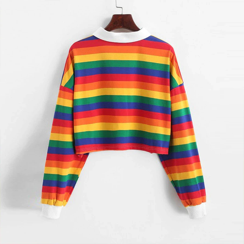 If you're wanting to stand out and make a statement, the bright vivid rainbow colour way is the perfect option for you. If you're wanting to keep it toned down, this fun polo shirt is also available in a beautiful pastel rainbow colour way.