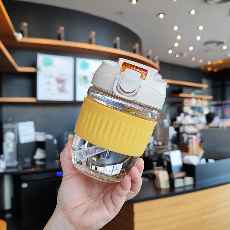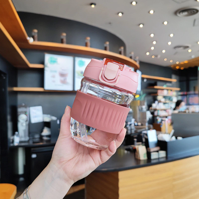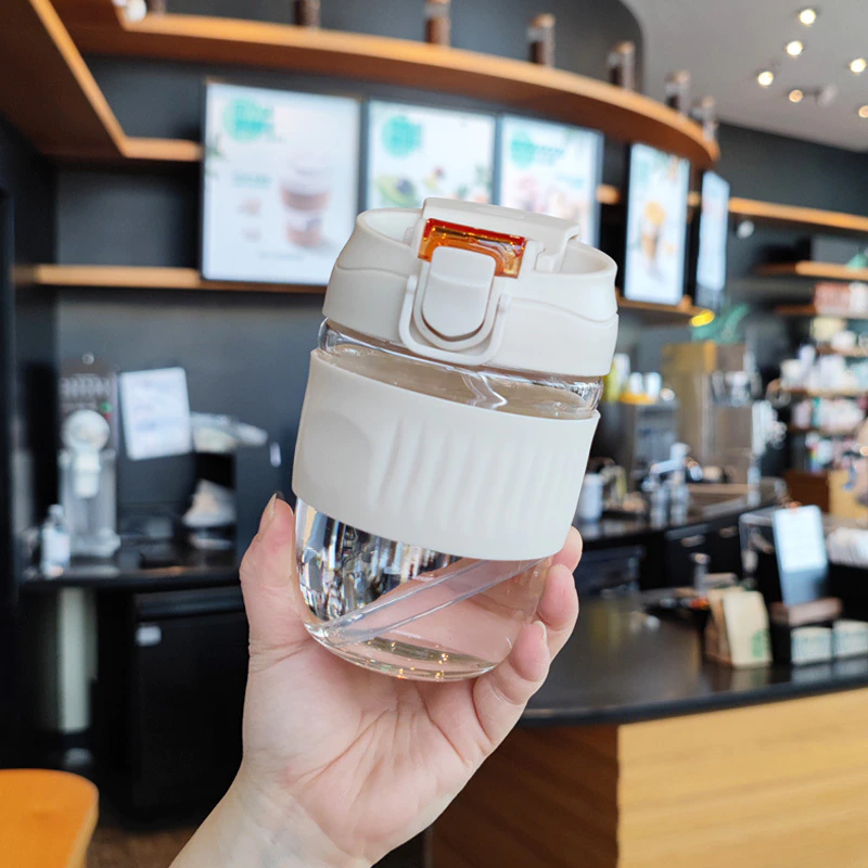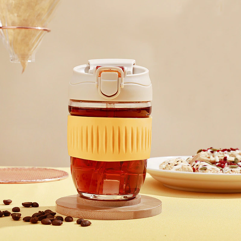 Keep your coffee hot and take it on the go without fear of spillage with this cute glass travel mug.