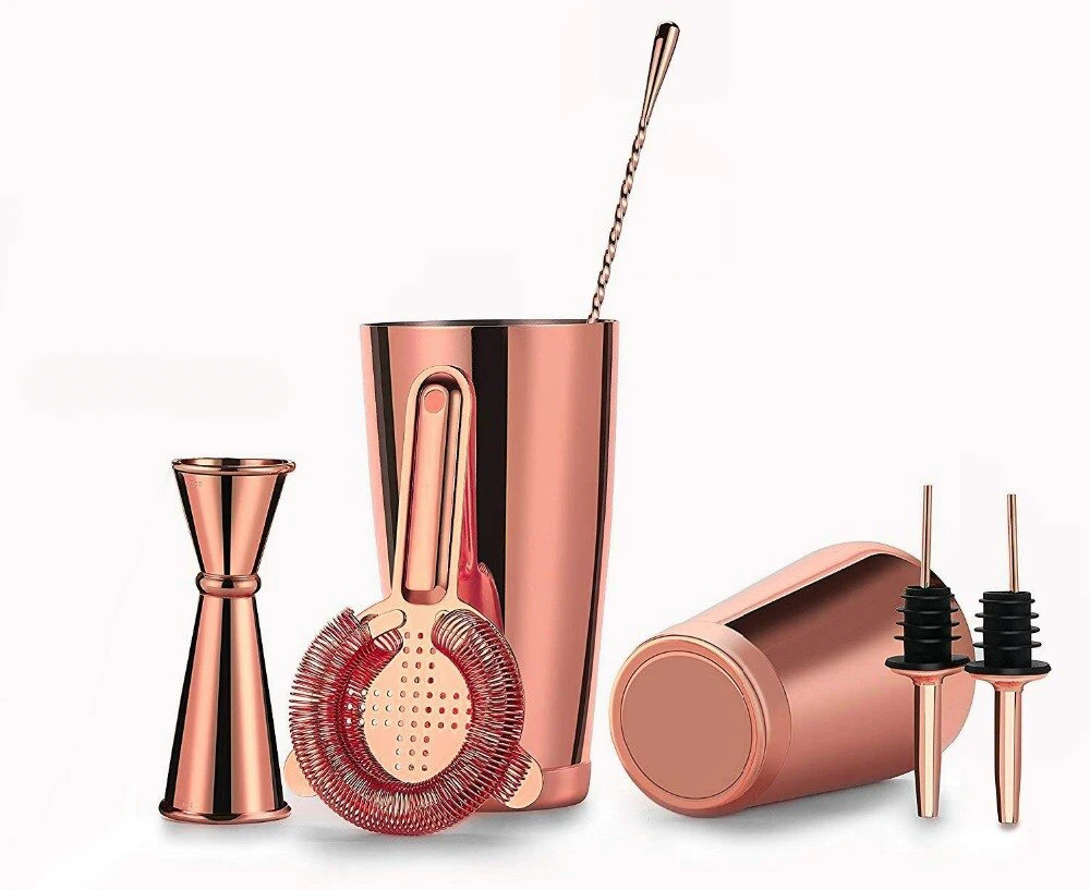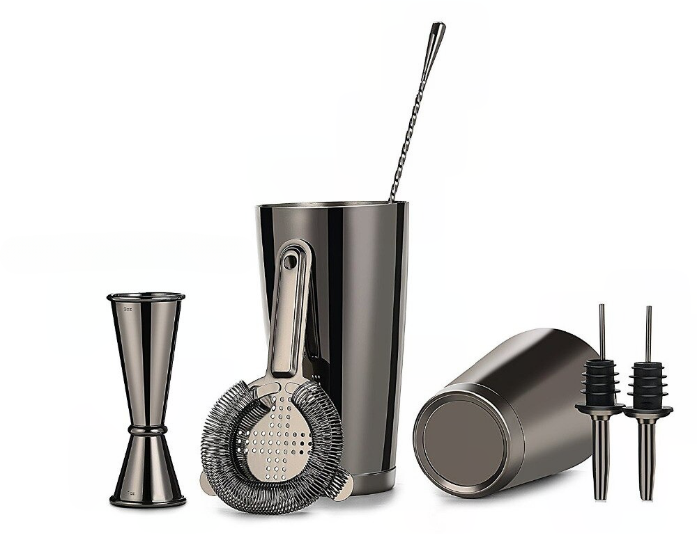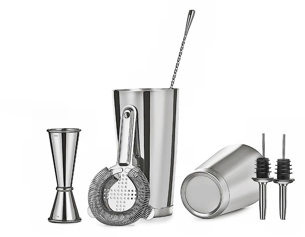 Elevate your cocktail game with this sophisticated cocktail shaker set. Crafted from high-quality stainless steel, this set is both durable and food-safe. The water-tight seal ensures that your carefully crafted cocktails won't spill and the included Hawthorne cocktail strainer makes sure your drinks are perfectly mixed. The set also comes with a double jigger and mixing spoon, making it easy to measure and mix your favorite cocktails. Whether you're a seasoned mixologist or just starting out, this cocktail shaker set is the perfect addition to your at-home bar.
