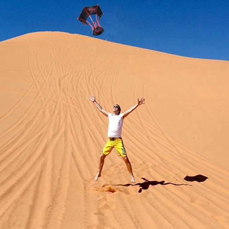 Up your GoPro game with a throwable vortex mount, providing an aerial view for your footage. Each package includes an umbrella, a base, a GoPro silicone case, a lens tempered film, a mini wrench, a storage bag and an instruction manual. To use, simply hold the umbrella together at the end and throw it upwards. The recommended safe throwing height is 6-8m.