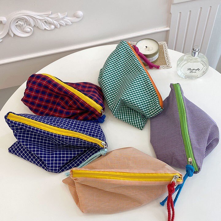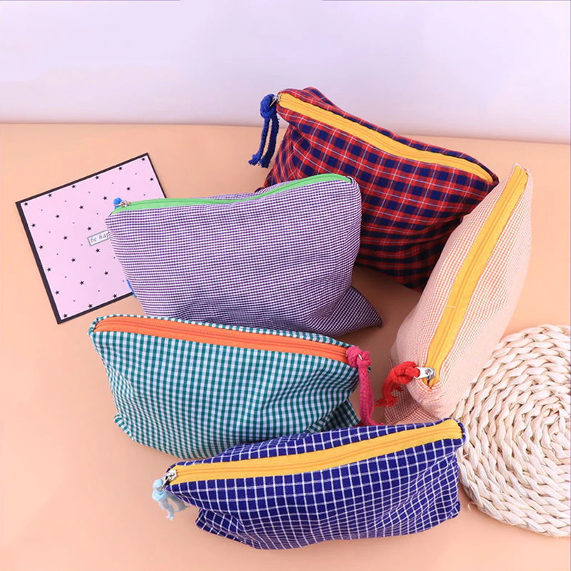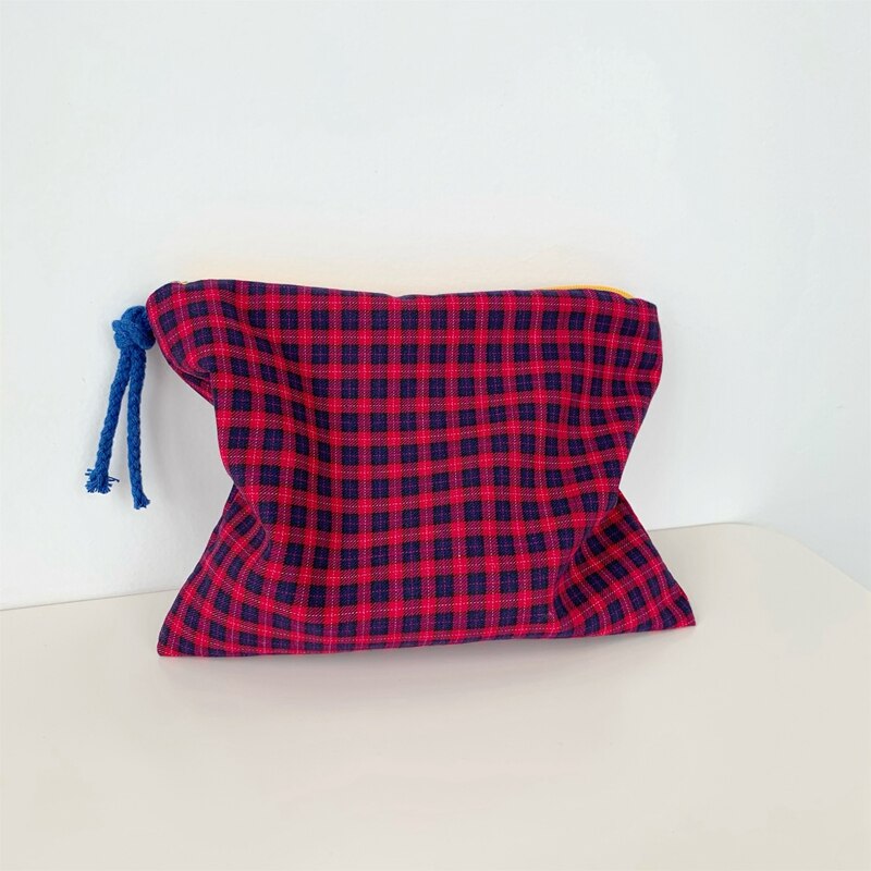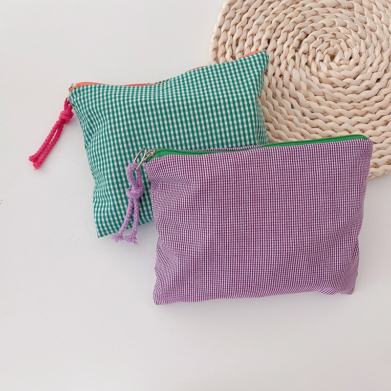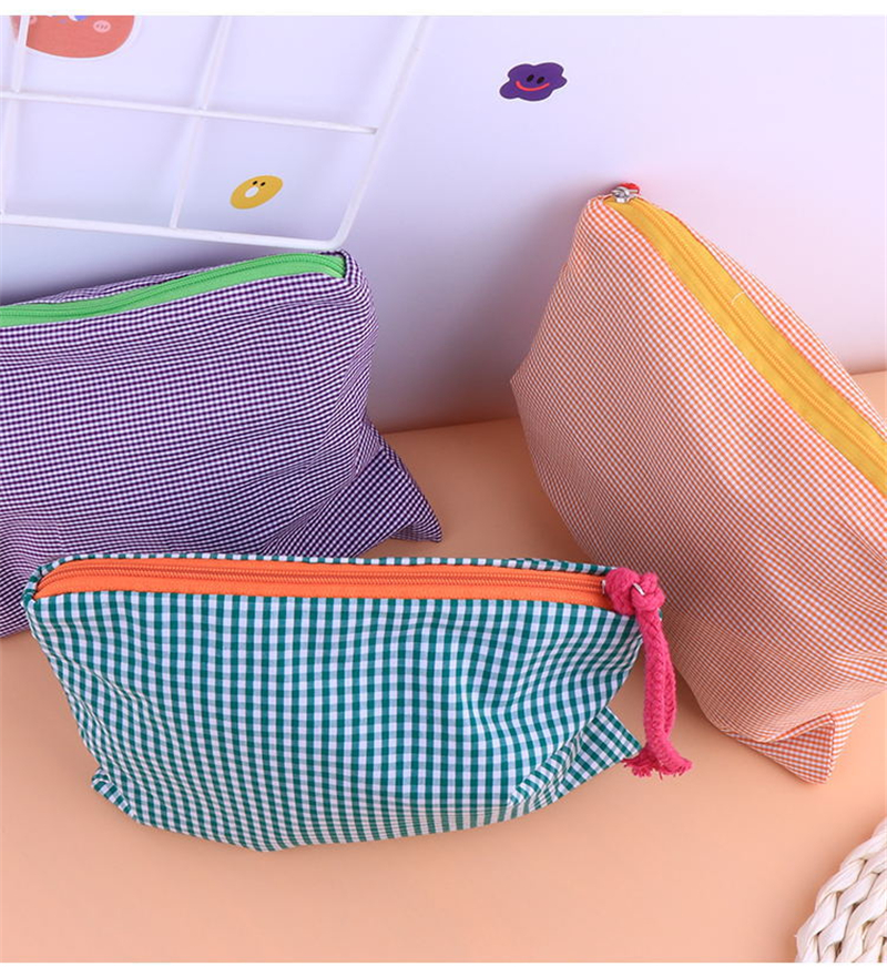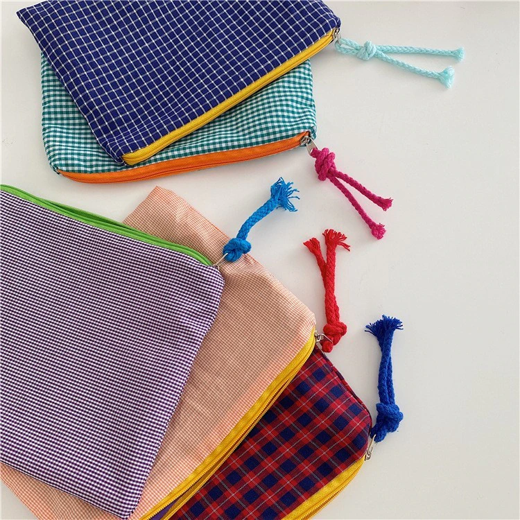 This plaid grid patterned zipper pouch will keep all your essentials safely tucked away in a stylish way. The Grid Pattern Zipper Pouch is the perfect accessory for any outfit. Available in a variety of colors, this little bag is perfect for your wallet, phone, and keys. It's also got a zipper, which is great for security. Keep it around to make sure your favorite things never get lost in the abyss of your bag!