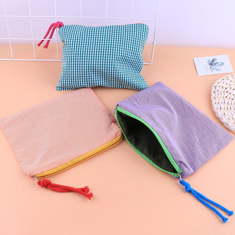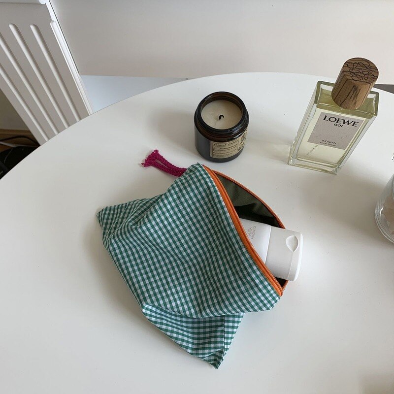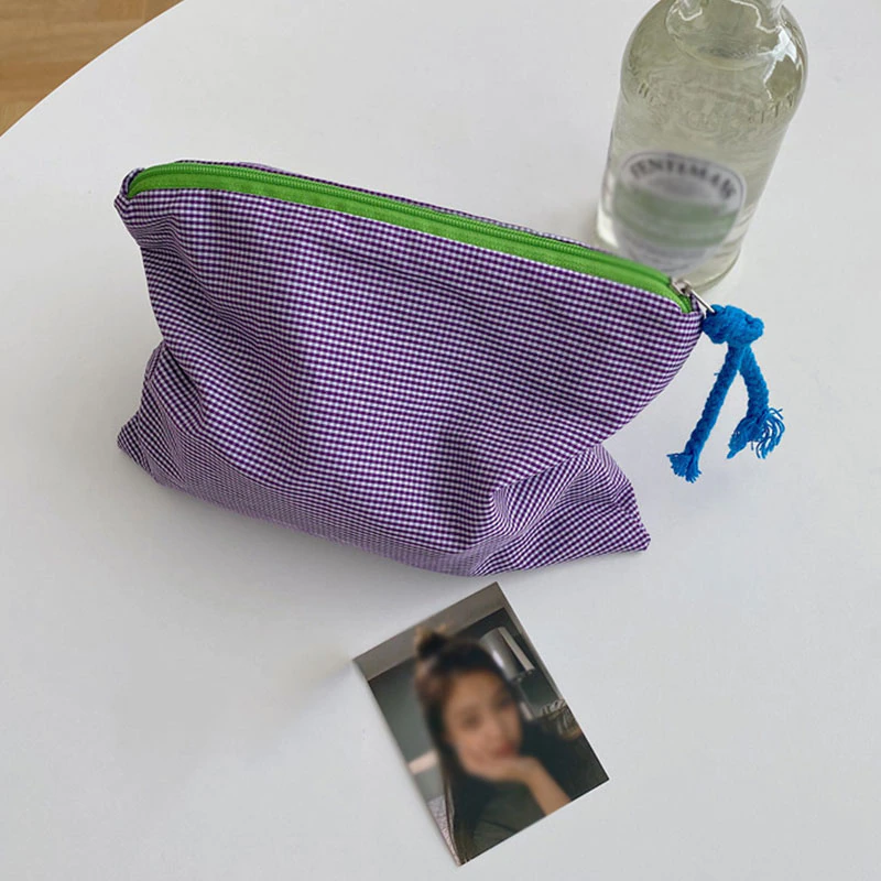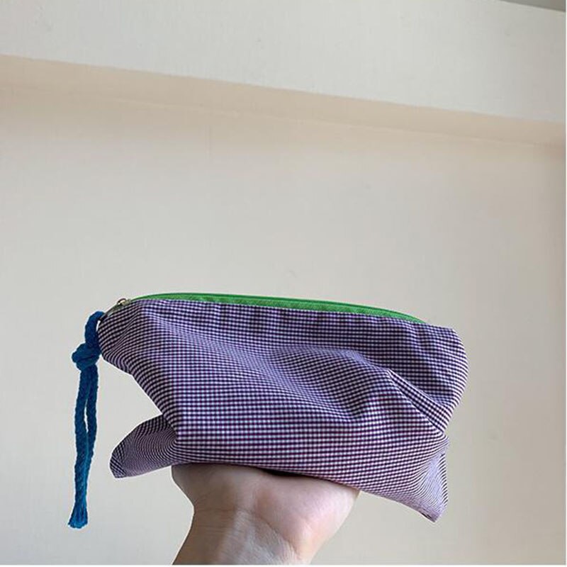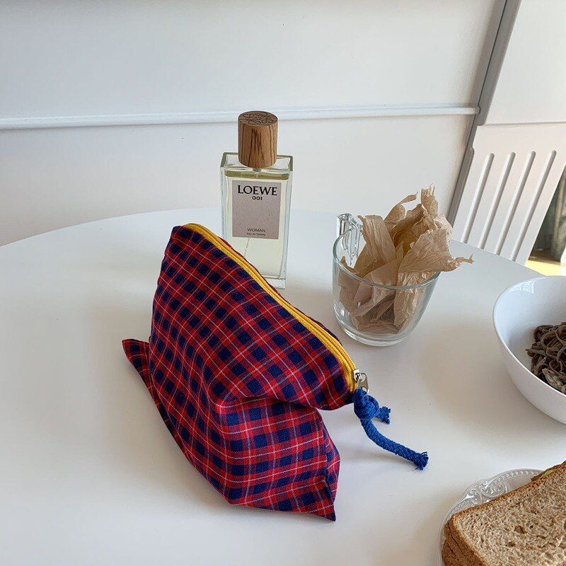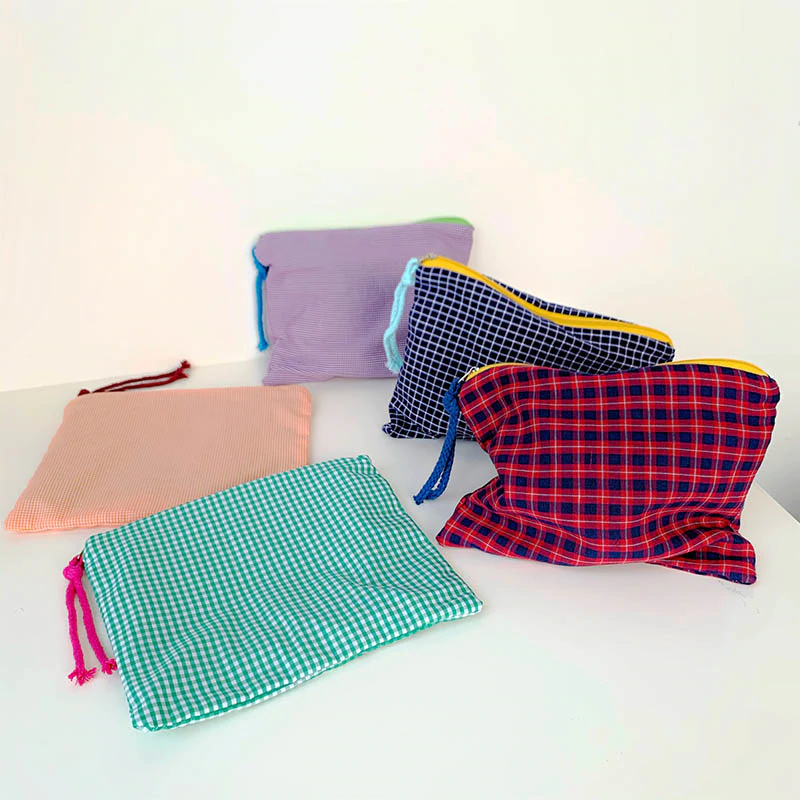 This plaid grid patterned zipper pouch will keep all your essentials safely tucked away in a stylish way. The Grid Pattern Zipper Pouch is the perfect accessory for any outfit. Available in a variety of colors, this little bag is perfect for your wallet, phone, and keys. It's also got a zipper, which is great for security. Keep it around to make sure your favorite things never get lost in the abyss of your bag!