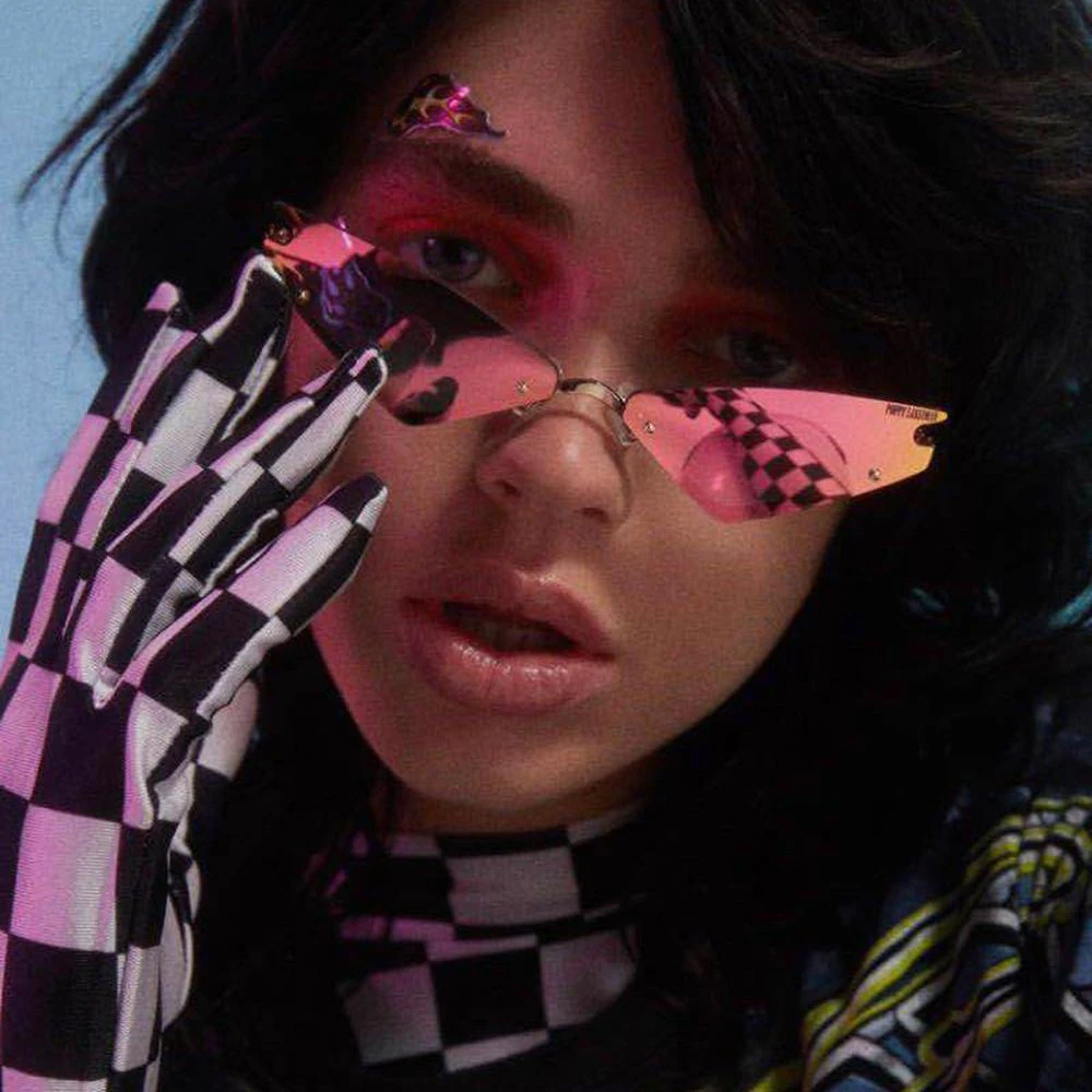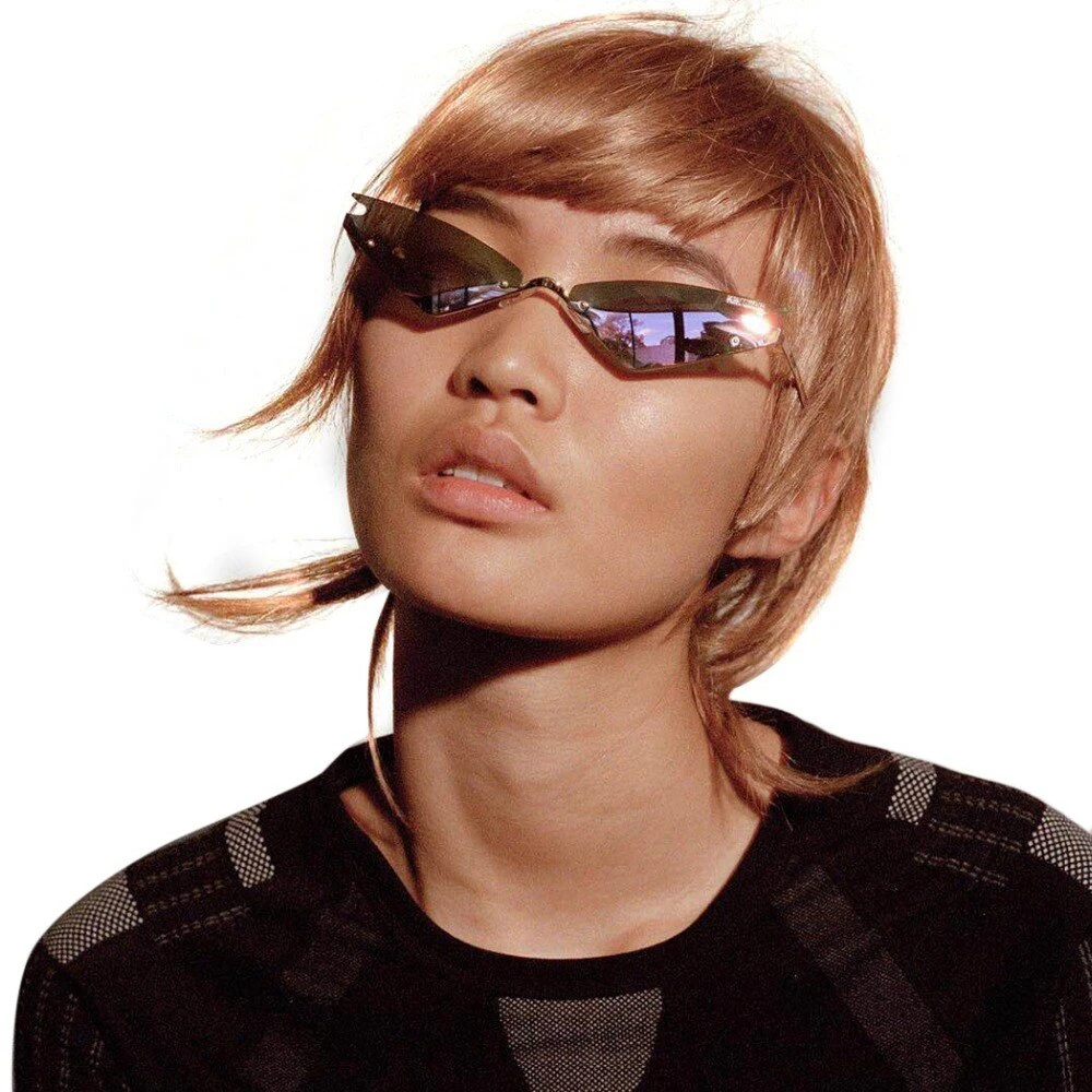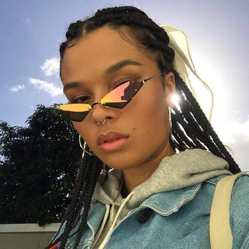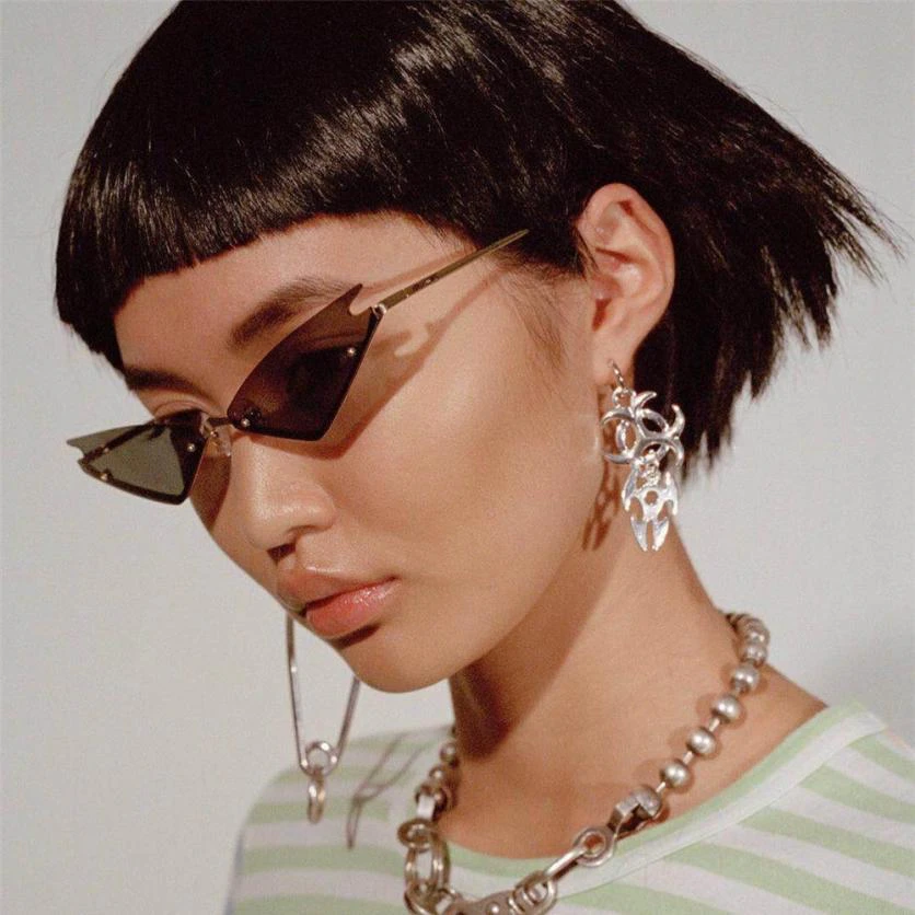 A unique take on the trendy cat-eye look. The colored, transparent lenses, rated UV400 and made of polycarbonate, and the gold metal temples add style to these glasses. The alloy frame is constructed to withstand day-to-day wear. The temples are 13.6cm long, and the front-on width of the glasses is 14.1cm. Available in several colors.