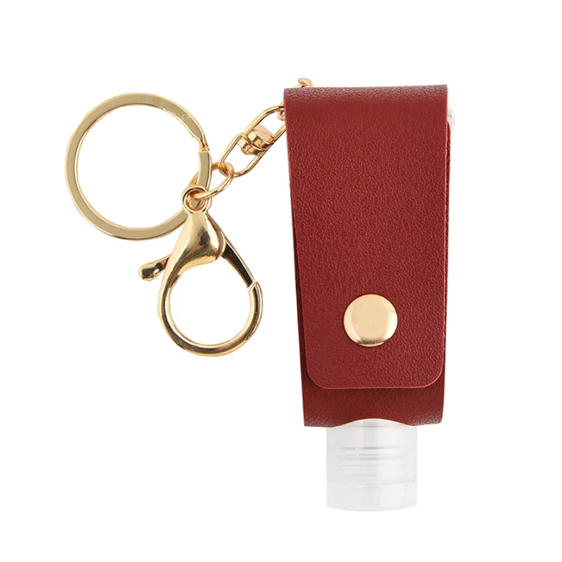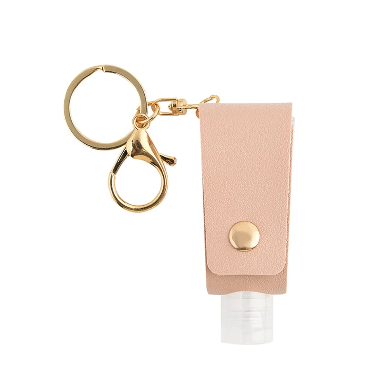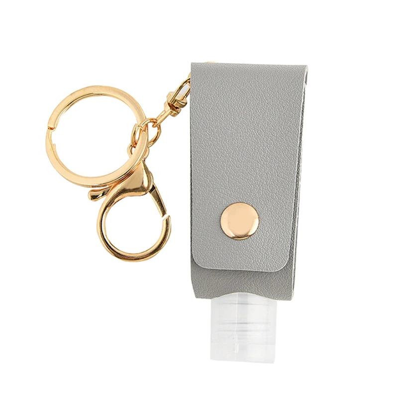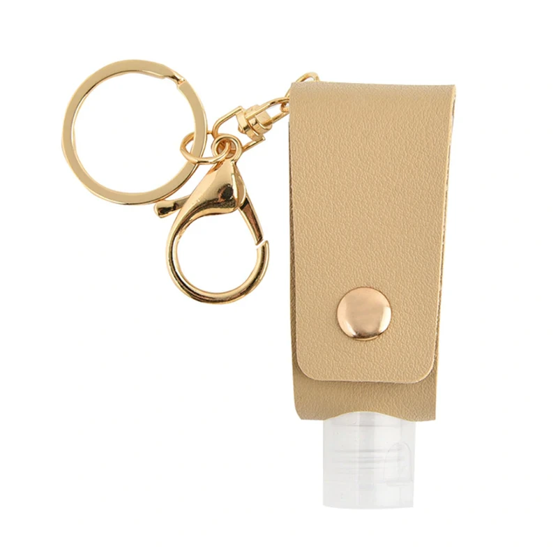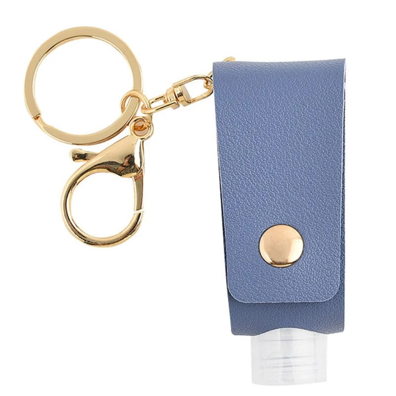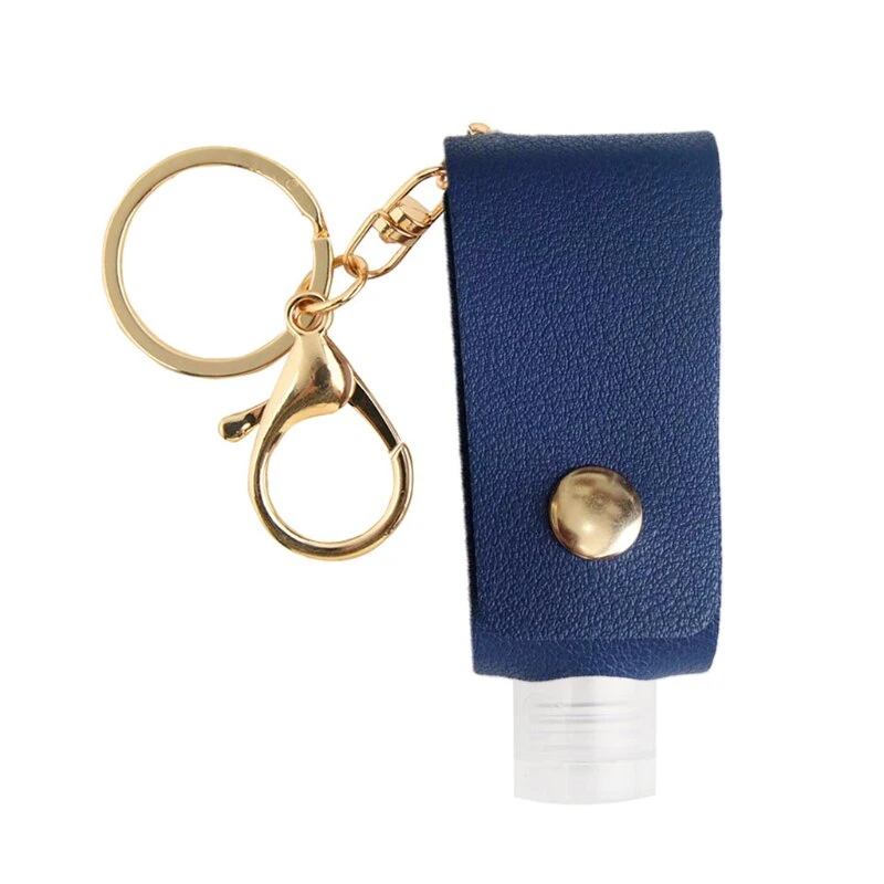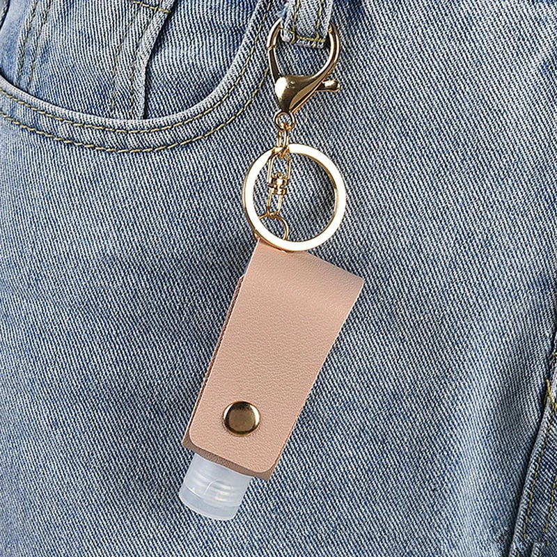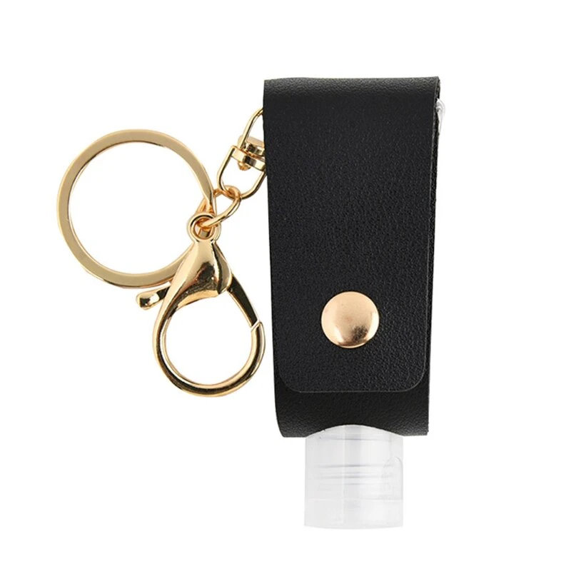 Ideal for keeping your hand sanitizer in easy reach, wherever you go. This keychain is connected to a leather case, which holds a plastic, refillable bottle. The keychain has a clasp on the end to attach to tags, as well as a standard keychain to put onto your car or house keys. Simply undo the buckle of the leather holder, refill the plastic bottle with your favourite hand sanitizer, and feel safe as you accomplish your daily tasks. Measures 8x3cm.