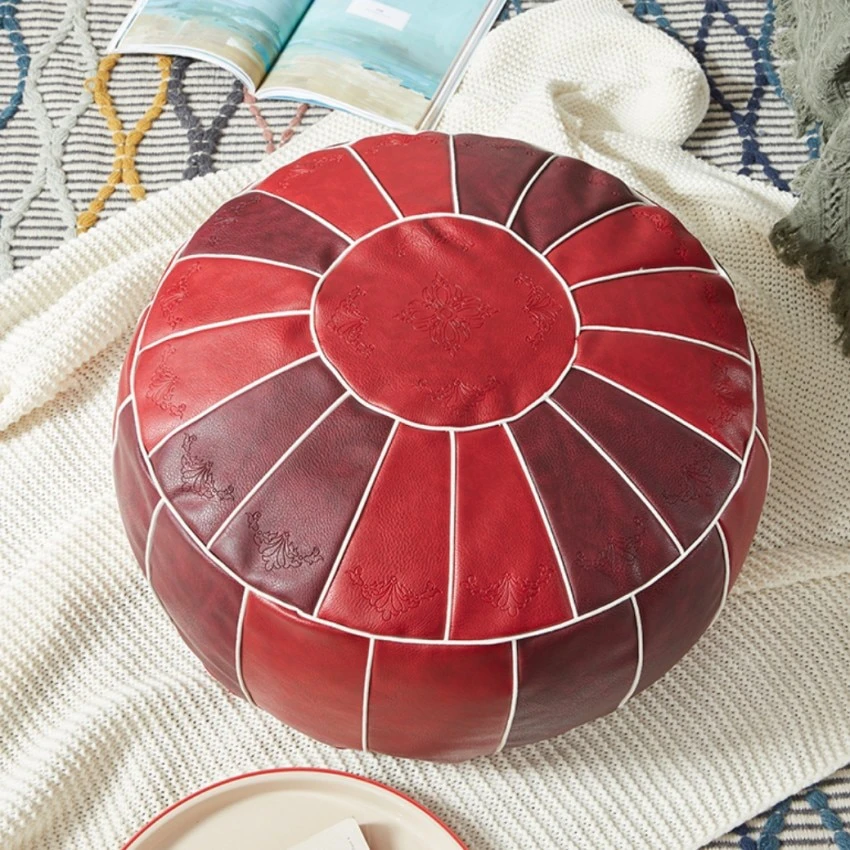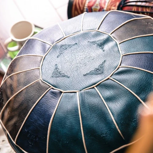 Add a touch of bohemian elegance to your living space with this handmade Moroccan pouf. Crafted with care and attention to detail, each pouf is made from high-quality PU leather material that not only looks luxurious but also feels incredibly soft to the touch. The zip closure ensures that the cover remains securely in place, while also allowing for easy removal when needed. Versatile and practical, this pouf comes as a cover only, giving you the freedom to fill it to your desired firmness and comfort level. Whether you use it as an extra seating option, a footrest, or simply as a stylish decorative piece, this pour will effortlessly elevate the ambiance of any room. Embrace the charm of Moroccan craftsmanship and bring a touch of exotic flair into your home today.