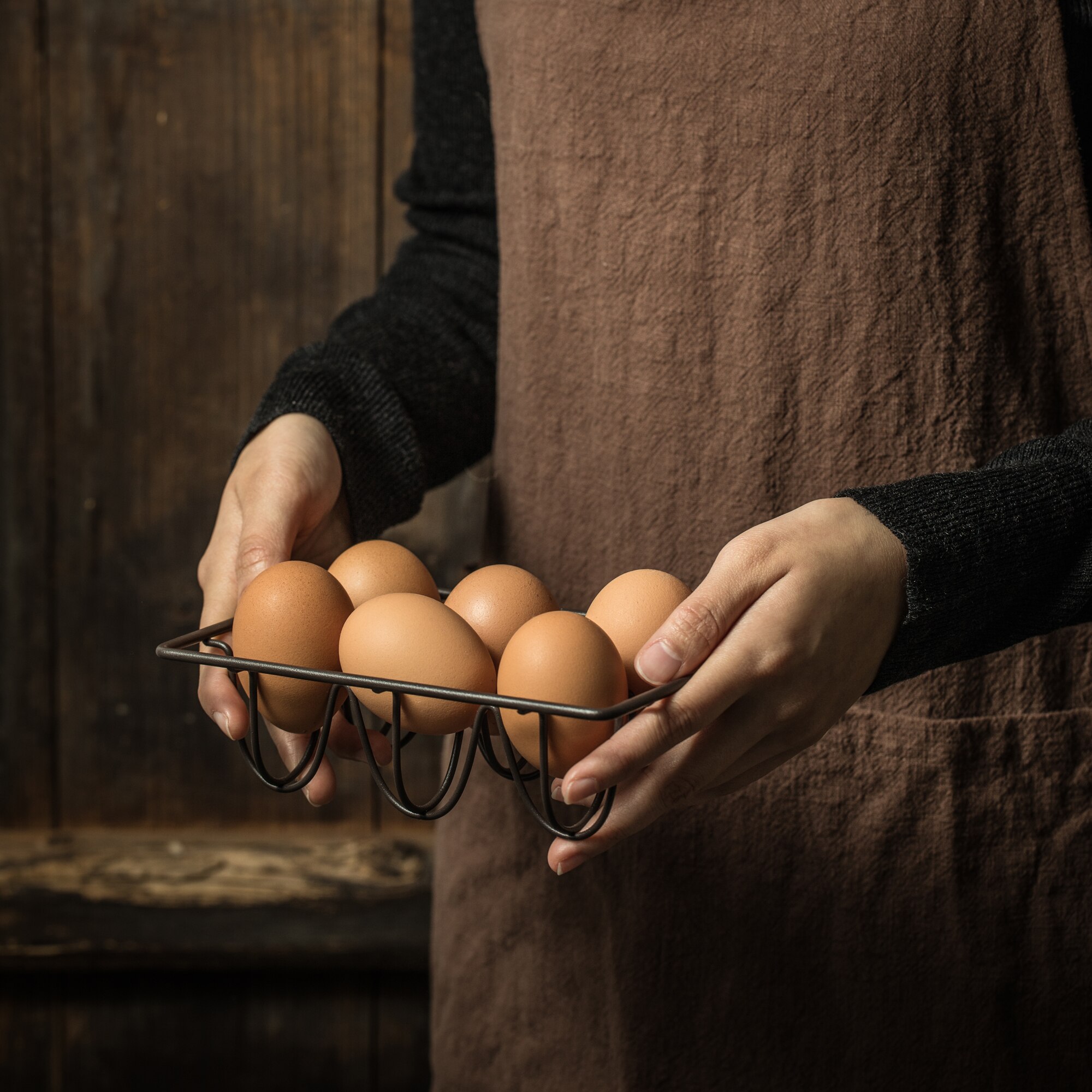 This handmade egg rack is a perfect addition to your kitchen. Made from durable metal, it can hold up to 6 eggs and has a smart design that allows you to access the eggs from either end of the rack. The egg holder also doubles as a handy carrier for two eggs or an individual egg, making it perfect for chefs on the go.