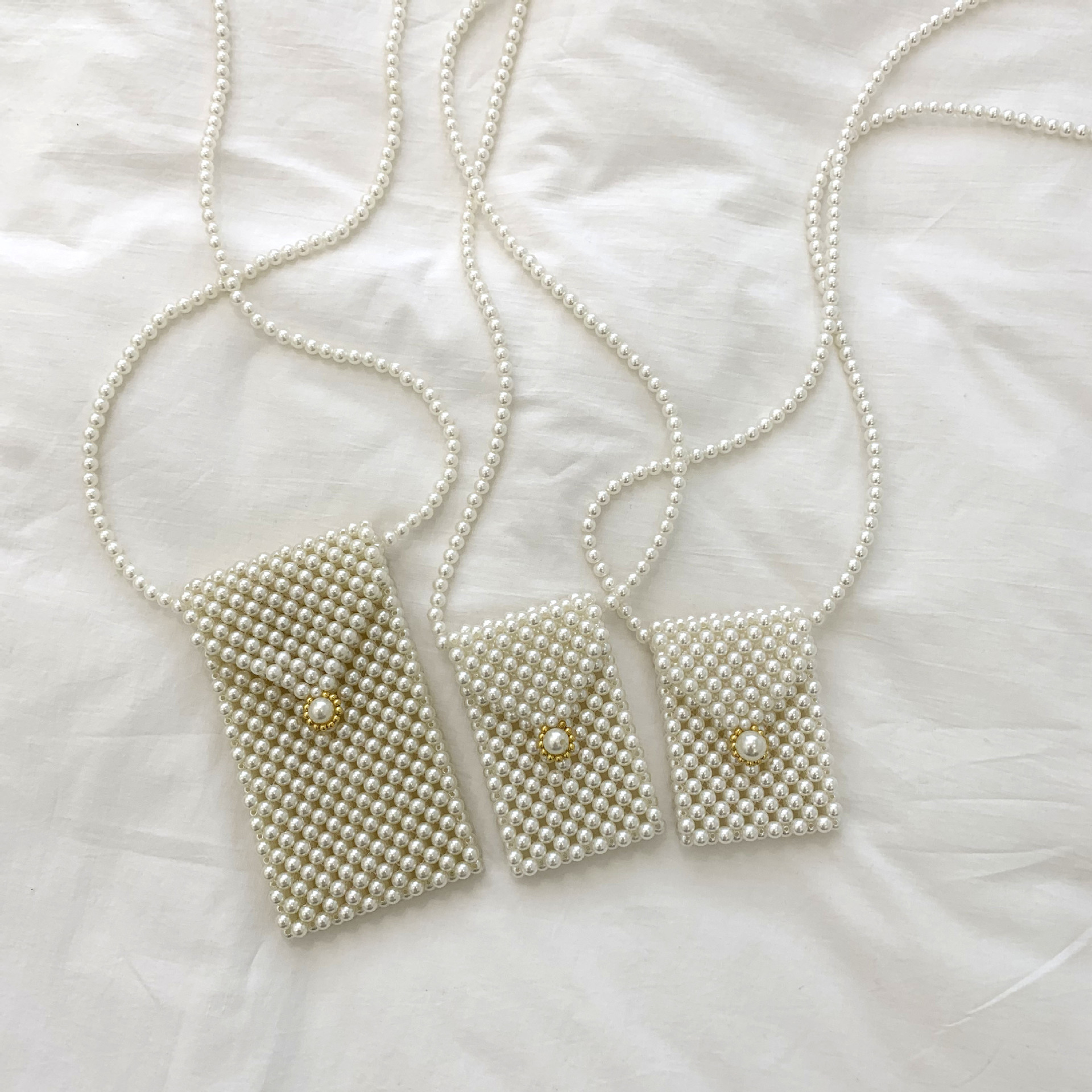 Different and trendy, this purse is a classy addition to any outfit. The handwoven pearls give the bag a vintage and high-quality look, and the gold accents add color to some of the designs. You can choose from many different bag designs to suit you. This is the perfect, fashionable way to store belongings on-the-go, whether you're at a festival or out running errands.