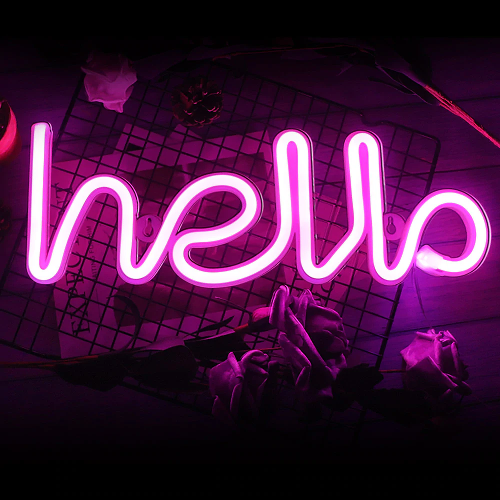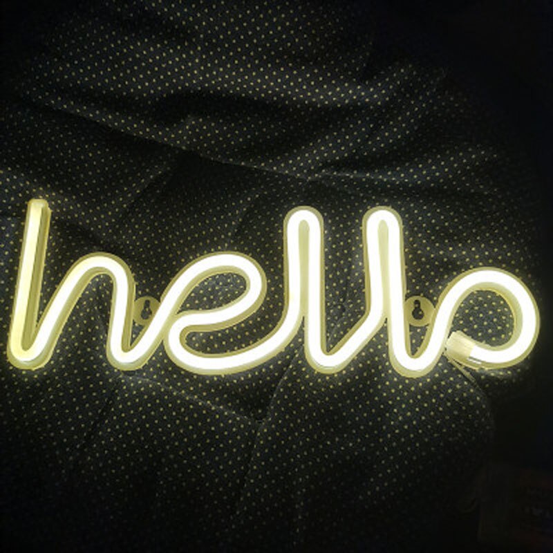 Make a statement in your home and welcome your guests with this "hello" neon light. The perfect addition to your entryway or living space, it brightens up any room. It is quick and easy to install - designed with a hole on the back to mount to your wall. Alternatively, you can simply stand the light up on a table. Made of plastic and powered by LED lights, which function via an easy ON/ OFF switch on the battery box. Requires 3x AA batteries (not included), or can be powered by USB. A great Christmas or Birthday present, there are different designs available, so you can pick the perfect light that suits you or your loved one. The designs vary in size.