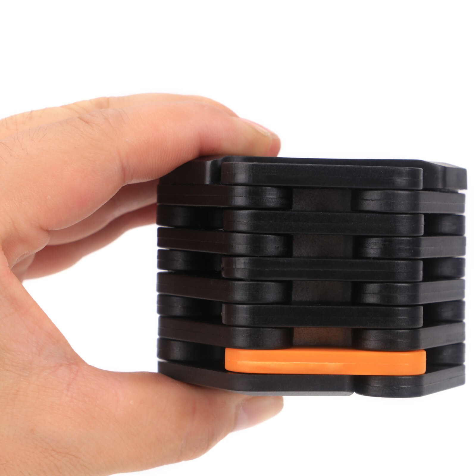 Sturdy, durable and functional, this hexagon shaped foldable bike lock is designed to keep your bike securely locked without the fear of someone trying to steal, break or cut away your lock to access your bike.