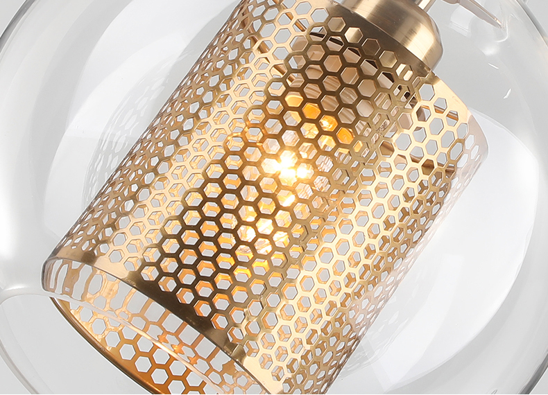 Bring a touch of modern elegance to your home with this beautiful pendant light. Featuring a stunning honeycomb interior design, this gorgeous light offers a unique and sophisticated look that will impress any guest. The transparent glass shade adds an extra layer of beauty, allowing the light to shine through in a warm and inviting way. With a range of styles to choose from, you're sure to find the perfect pendant light to complement any room in your home. Upgrade your lighting game and add a touch of class to your living space with one of these unique honeycomb gold bulb pendant lights.