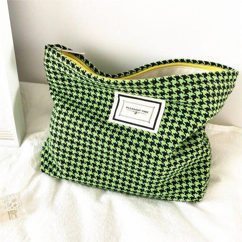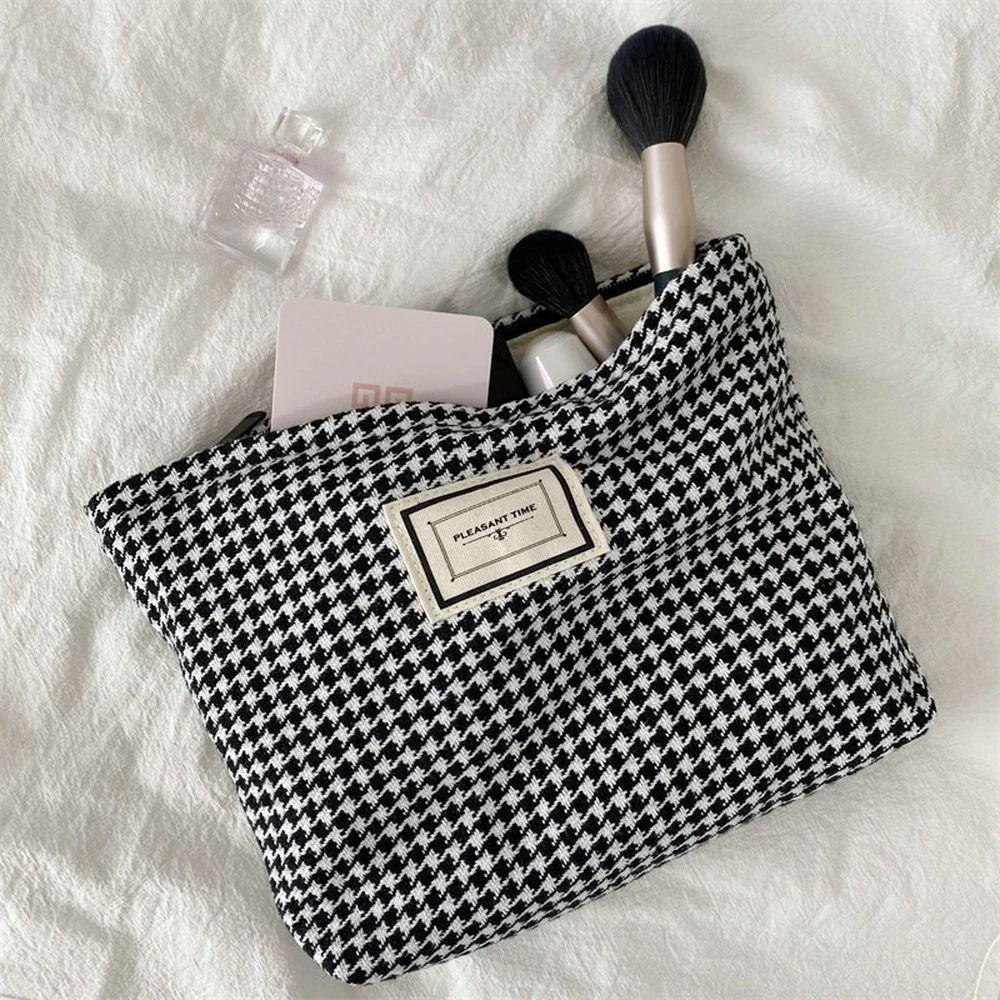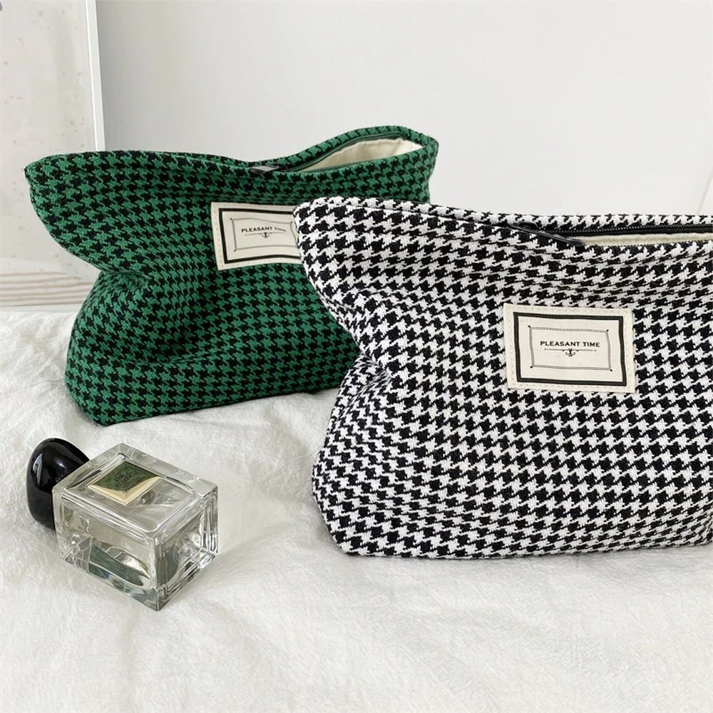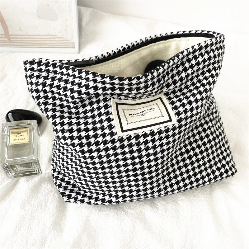 Stash your favourite makeup products in this beautiful houndstooth cosmetic bag.
