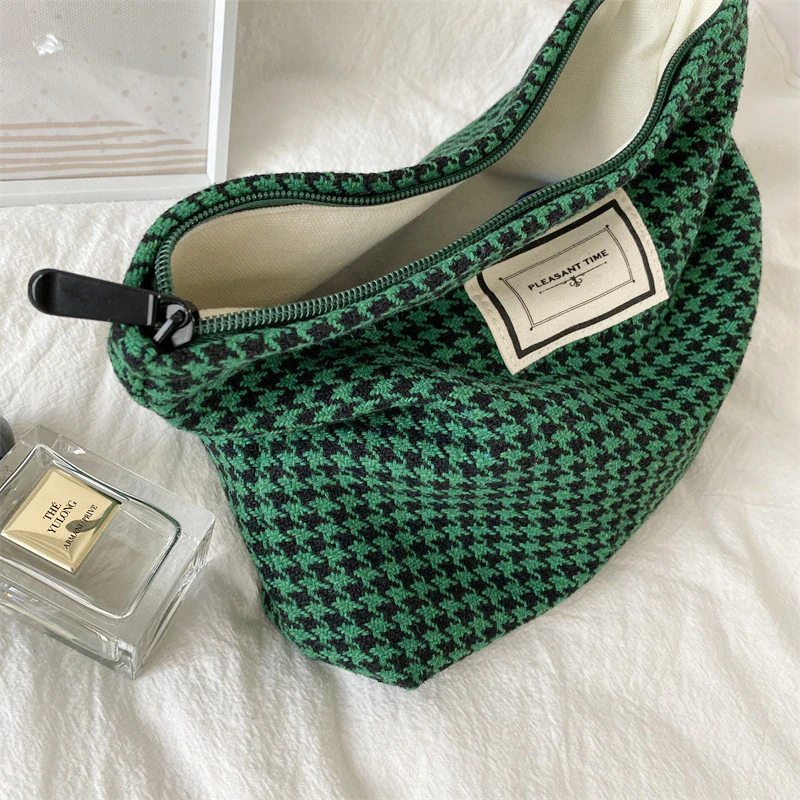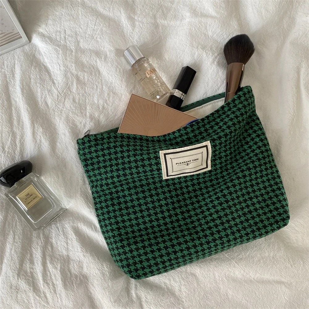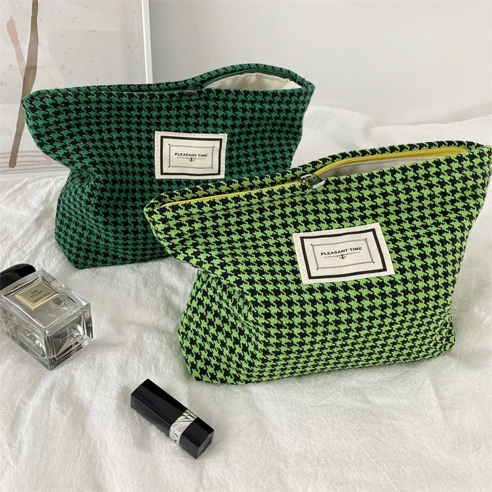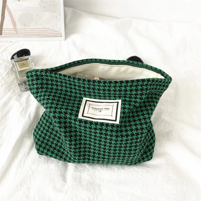 Stash your favourite makeup products in this beautiful houndstooth cosmetic bag.