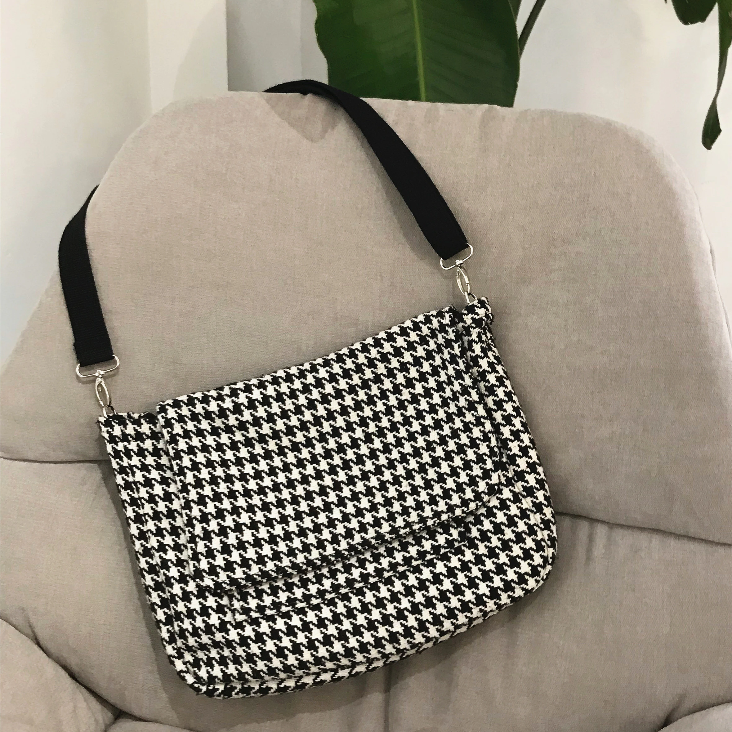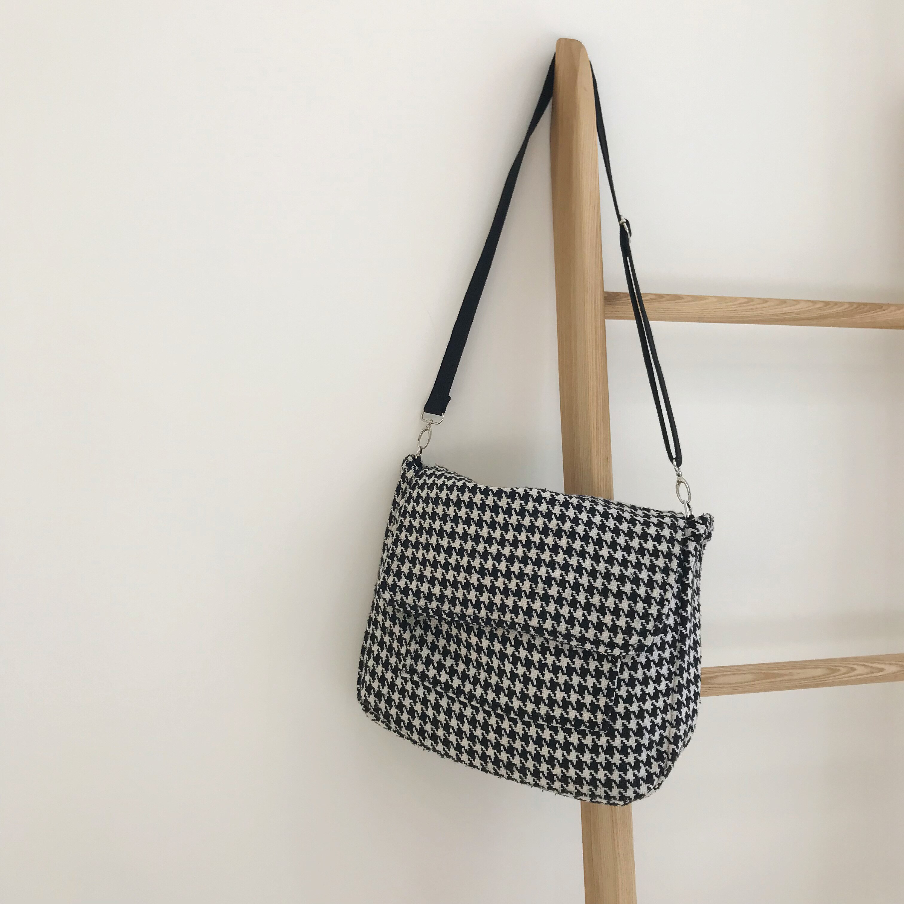 Carry your essentials for the day in this stylish houndstooth printed messenger bag.