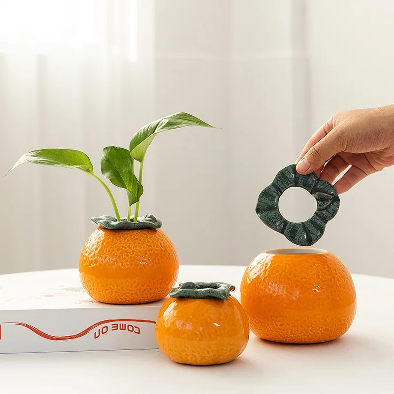 Add a splash of color and nature to your space with this vibrant orange fruit-shaped vase. Designed with the modern plant enthusiast in mind, this ceramic vase offers a delightful way to display your favorite hydroponic plants. Its unique design is not only a conversation starter but also a functional piece that supports the growth of greens without soil.