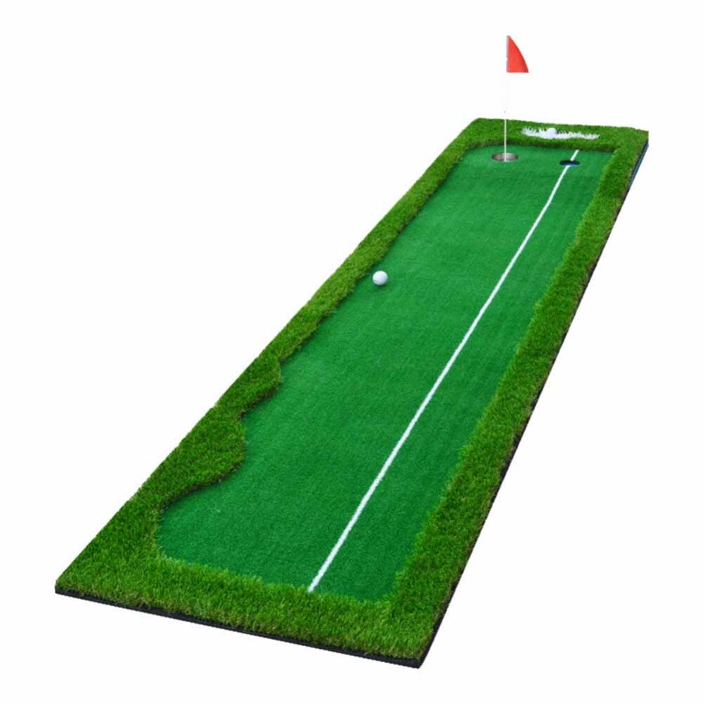 Bring the golf course to your living room with this indoor 3m putting green. Perfect for practicing your putting skills all year round, this putting green is designed for indoor use with a simulated grass surface that feels just like the real thing. The 3m length provides ample space for practice, while the rubber base ensures stability and easy setup. Plus, it comes with a green hole cup and small red flag for an authentic putting experience. When not in use, the putting green can be easily stored away until your next practice session. Whether you're a seasoned golfer or just starting out, putting green is a must-have addition to your home.