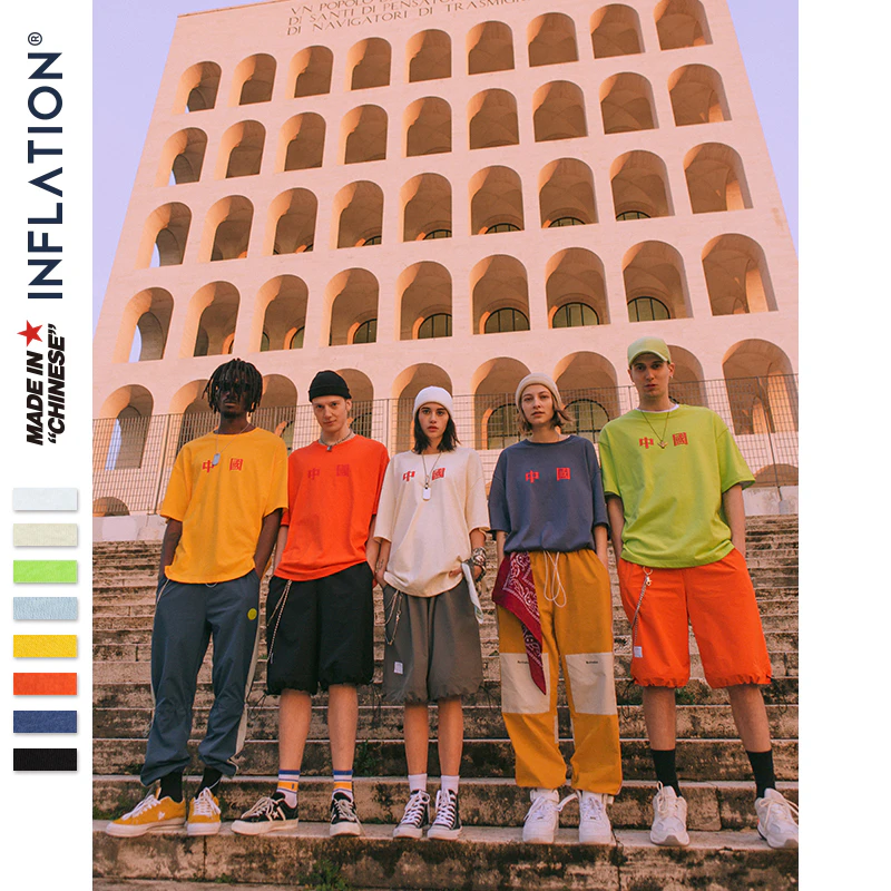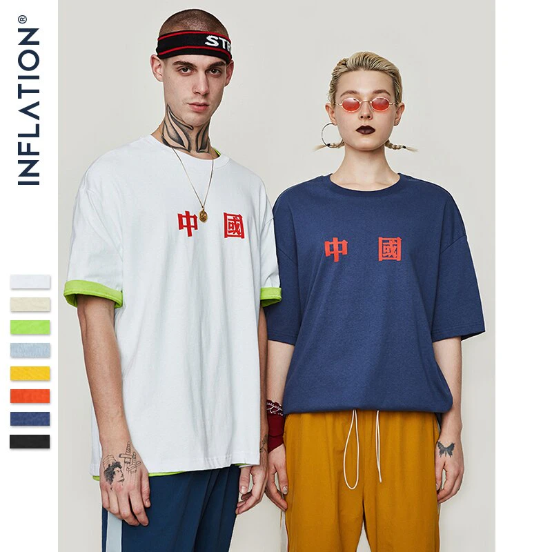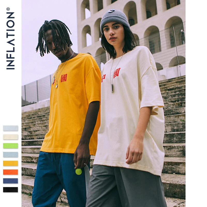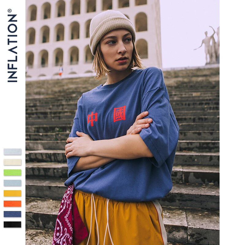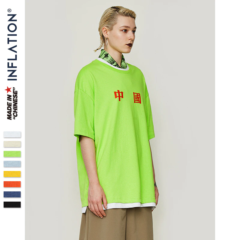 This is a quality oversized baggy street tee with a simple Chinese lettering print on the front.