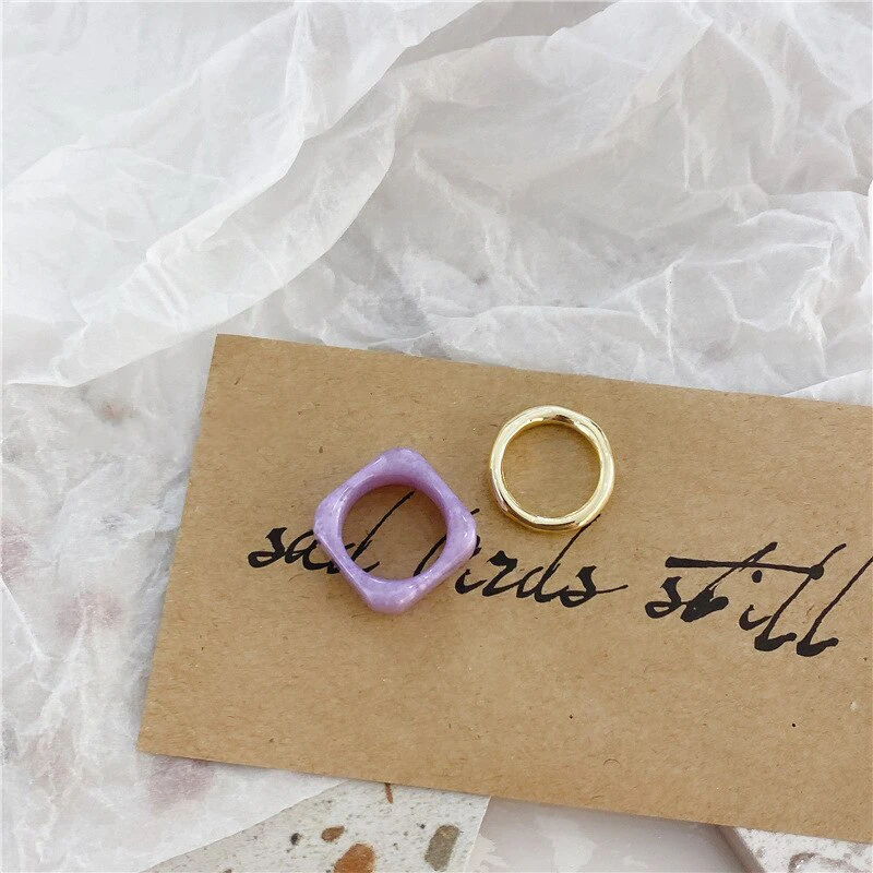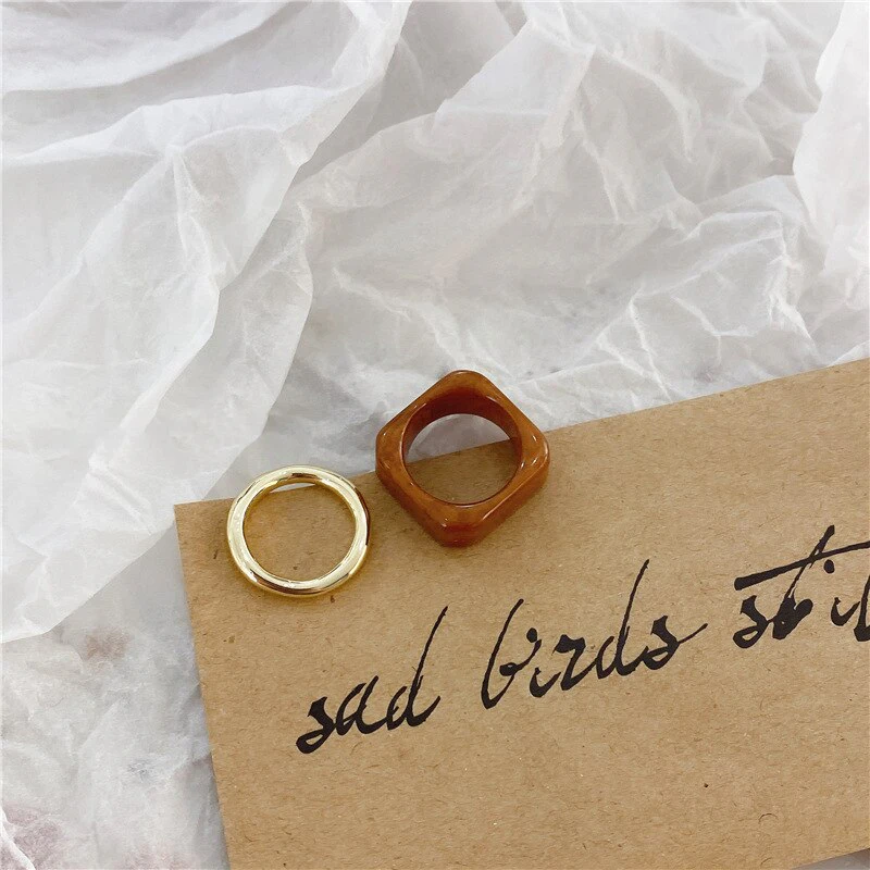 Irregular Resin & Gold Ring Set