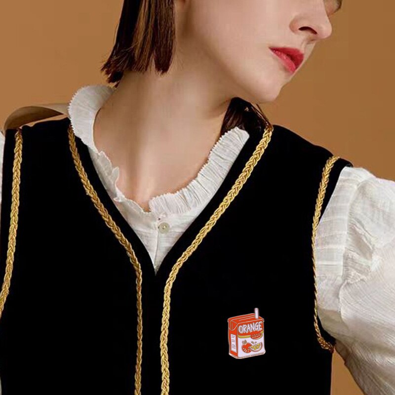 This eye-catching pin is made of quality copper material and is designed in the shape of a juice box. It's a fun and unique way to show your personality and to show off your love for juice!