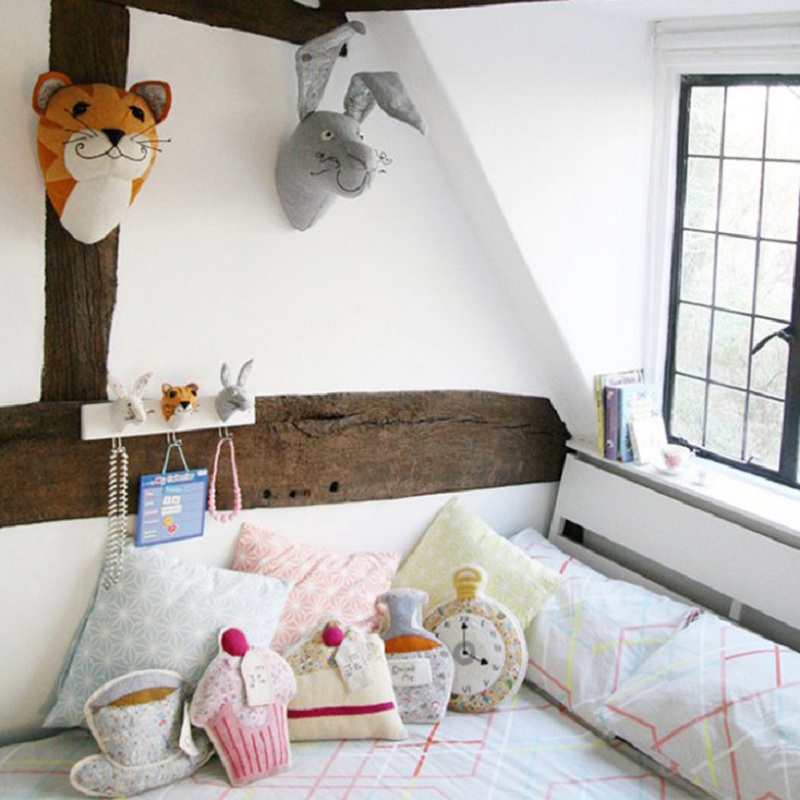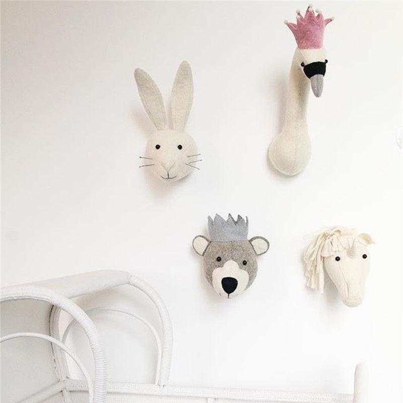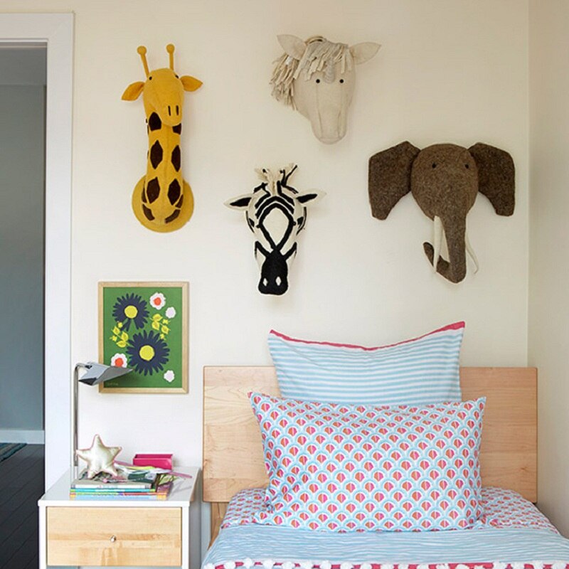 Perfect for decorating a nursery or a child's bedroom. These stuffed animals are designed with detailed facial features and are a fun way to decorate a bland wall, with a metal wall mount attached to the back of the animal heads. There are many different animals to choose from, so you can mix and match to get an array of animal friends for your home. The stitching and materials are of high-quality, with the details all firmly attached. Sizes differ among the various designs.