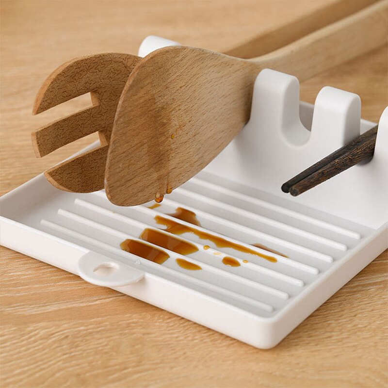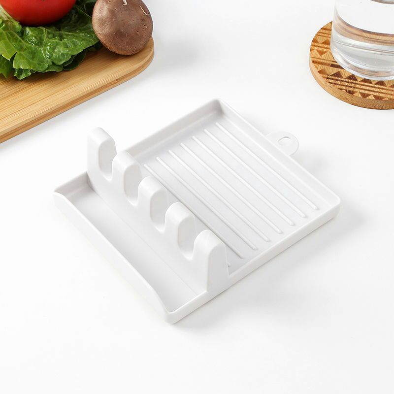 This utensil rests are a convenient addition to any kitchen! Keep your tools and kitchen surfaces both hygienic and mess-free. It has multiple notches for grip and compatibility with any utensil, and is made with food grade silicone. Available in green or white.