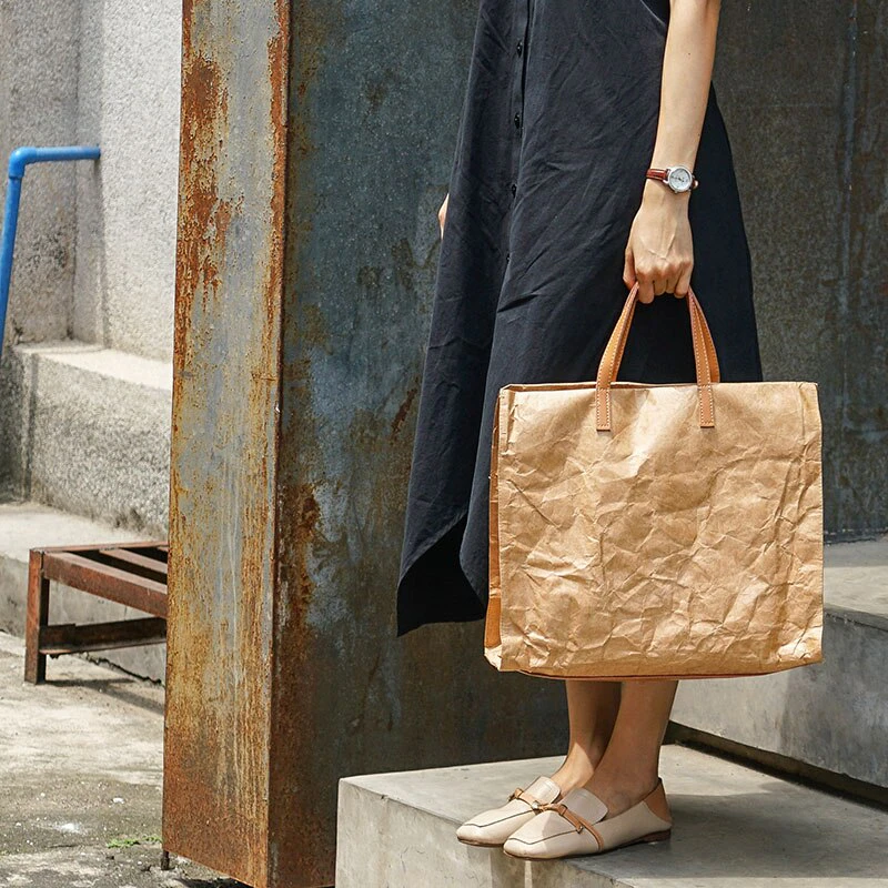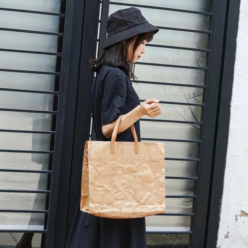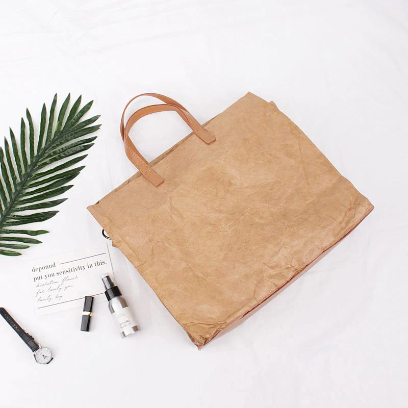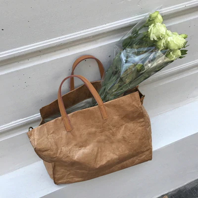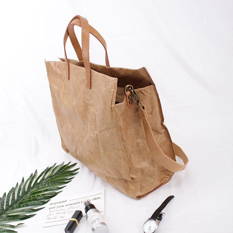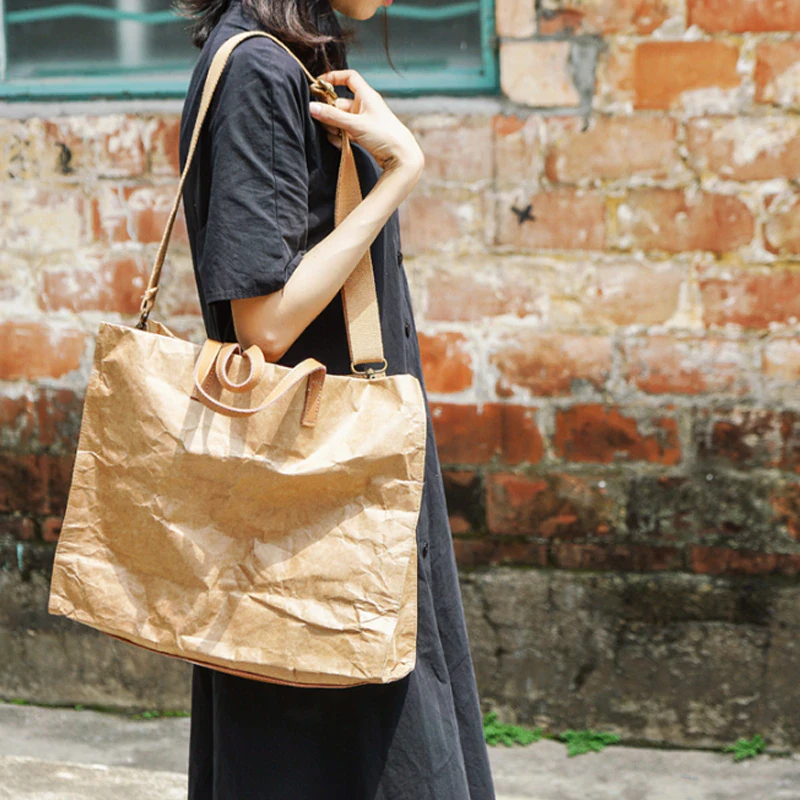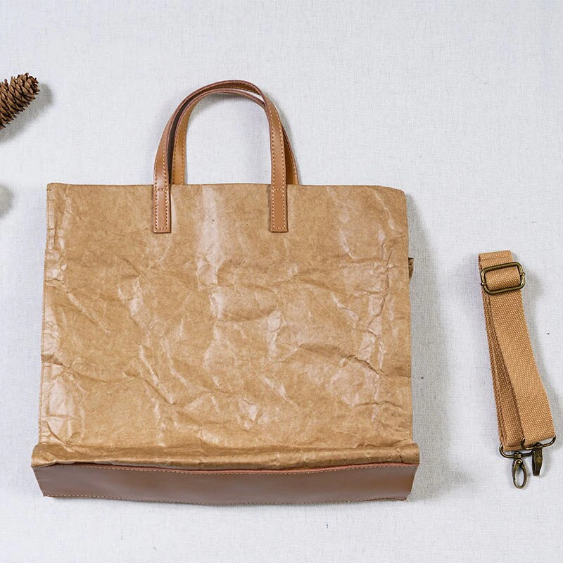 Tote your belongings in style with this kraft look shoulder bag with a stylish leather-like trim. Made of high-quality materials and construction making it durable and long lasting with a spacious interior with plenty of room for your essentials. The bag also features an adjustable and removable strap so you can wear it over your shoulder or carry it by the handle.