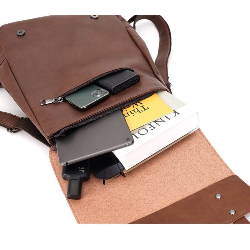 The vintage inspired design is constructed from durable PU leather with a large magnetic flap closure, a hidden pocket and on the reverse a small zip pocket that's ideal for storing your phone or wallet.