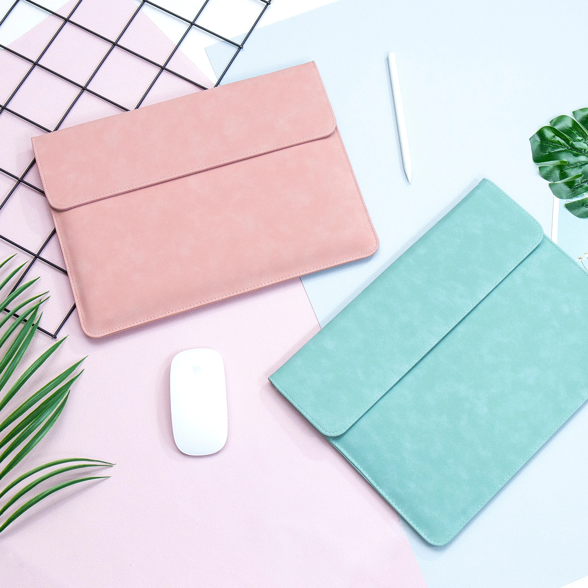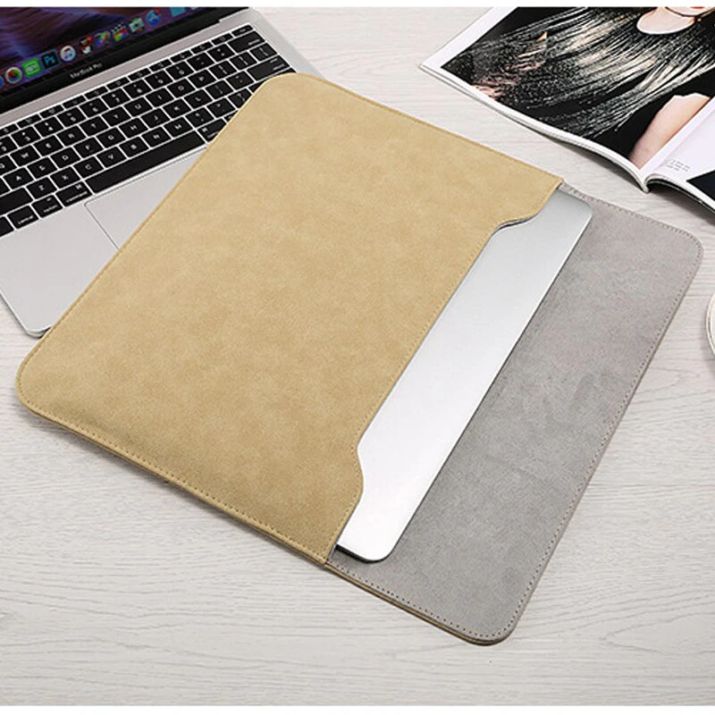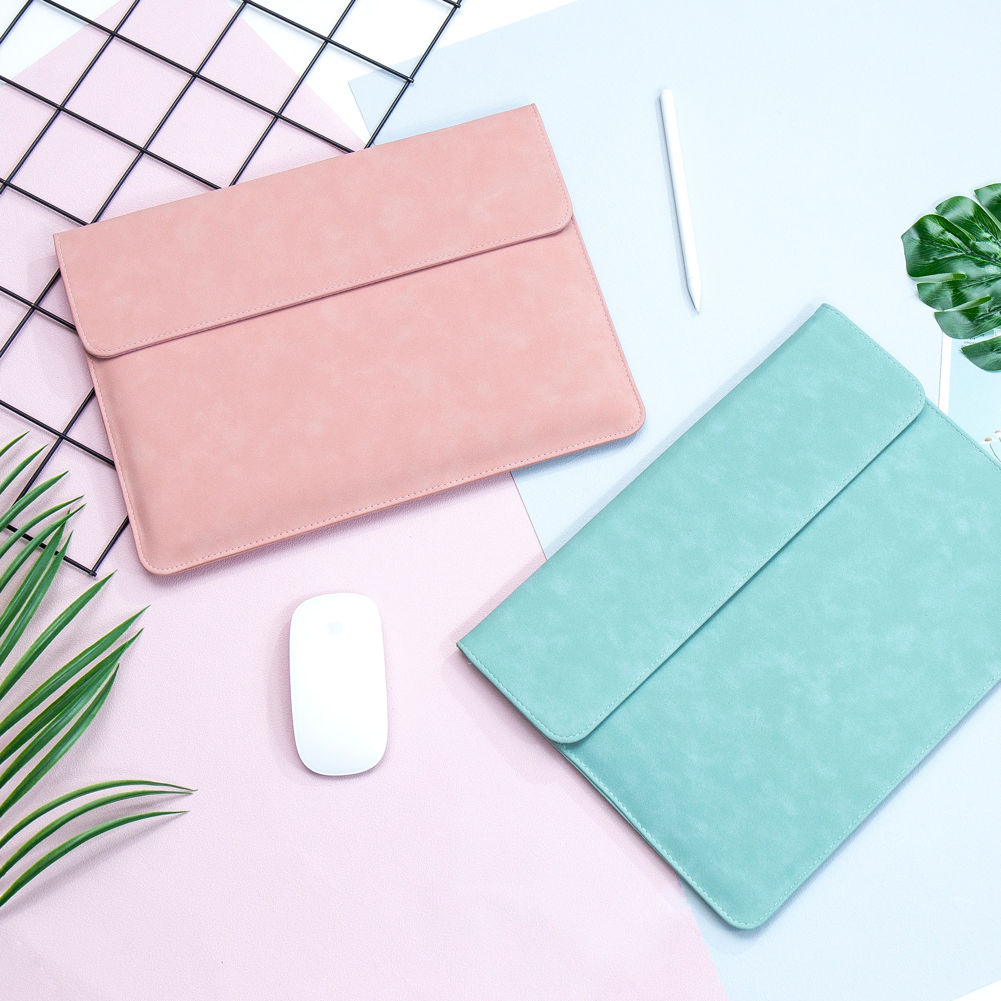 Made from smooth PU leather the slim, water resistant case features a magnetic flap closure and soft interior to protect your laptop from bumps and scratches, and also doubles as a mouse pad. The compact pouch has a zip closure ideal for stashing your charger, mouse, cables and more.