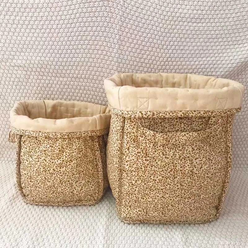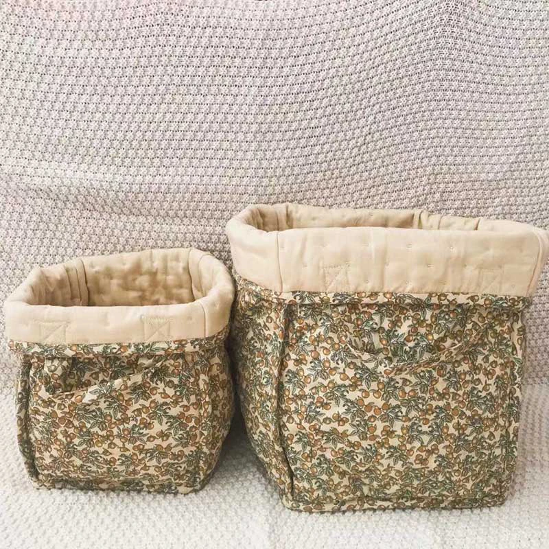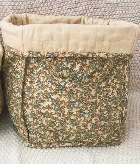 These fabric storage hampers are great for sorting and stashing all sorts of things. A lovely addition to the kids room for toys, laundry, diapers and more. It features a soft padded structure with grab handles and a vintage inspired design printed all over.