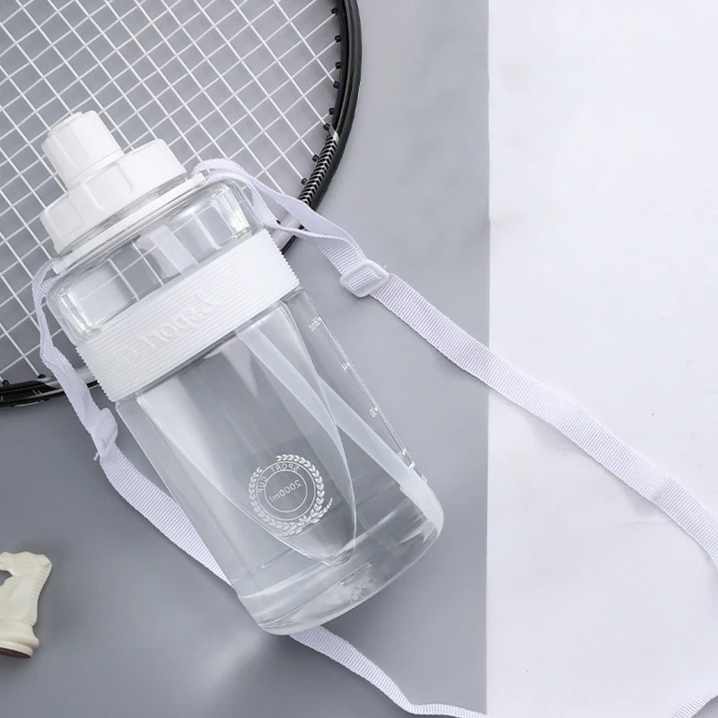 This large water bottle provides the ultimate solution for all day hydration without having to constantly refill your bottle. The silicone cap prevents spillage and protects the straw whilst giving you quick and easy sip access to your water. It features a scale printed on the side so you can track your water intake and a handy shoulder strap so you can take your bottle on the go with ease.