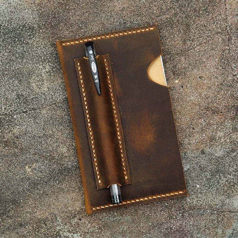 Keep your notes and ideas safe and organized with this beautiful leather diary cover. Expertly hand-stitched and crafted from high-quality leather, this cover has a timeless distressed finish that adds a touch of elegance to your everyday essentials. Designed to perfectly fit a pocket-sized notebook, this diary cover also features a convenient built-in pen holder to keep your writing tools at hand. Whether for work or personal use, this leather Field Notes Diary Cover is a must have accessory to elevate your note-taking game.