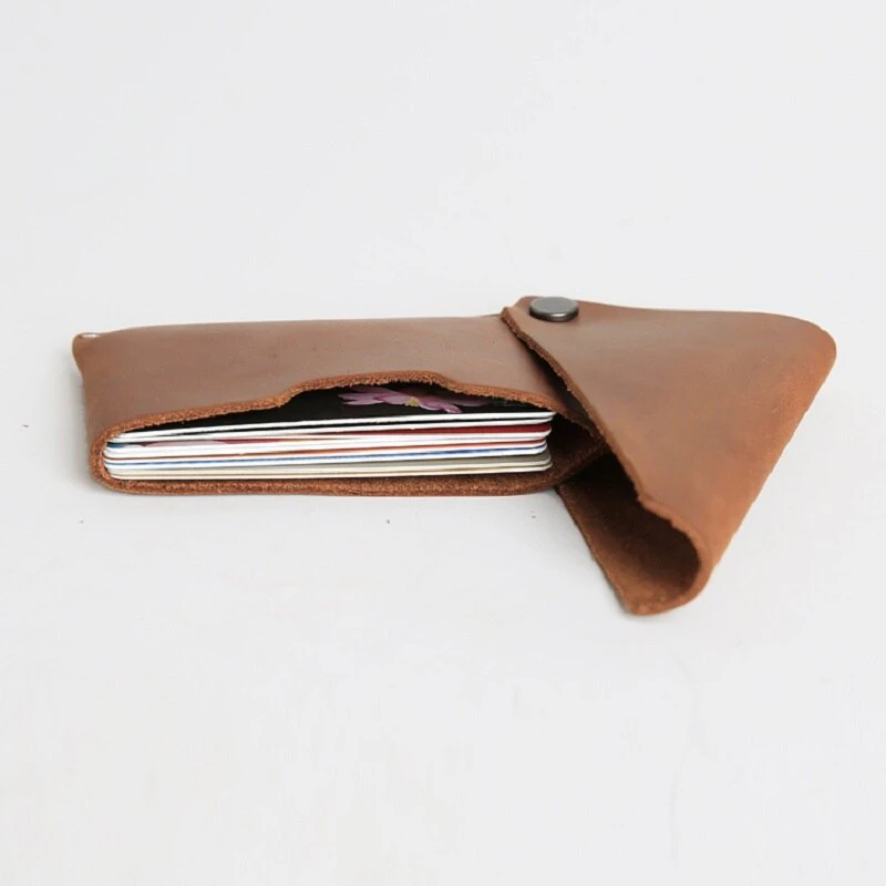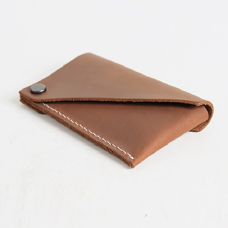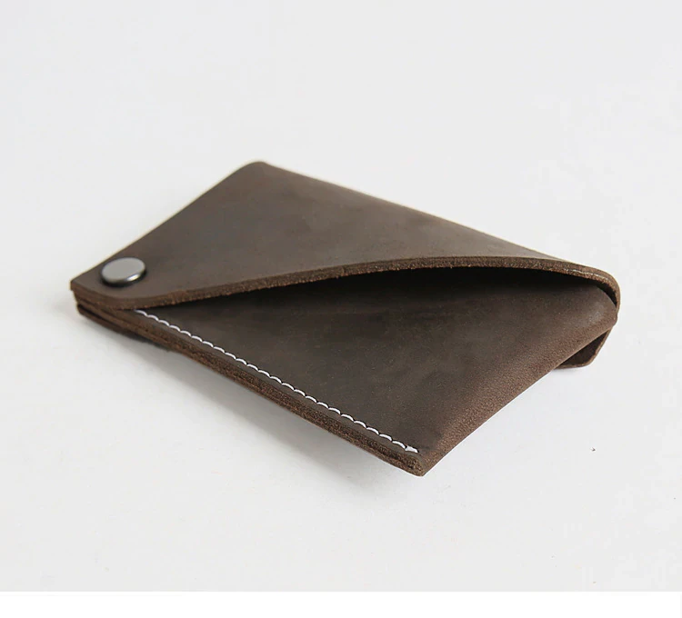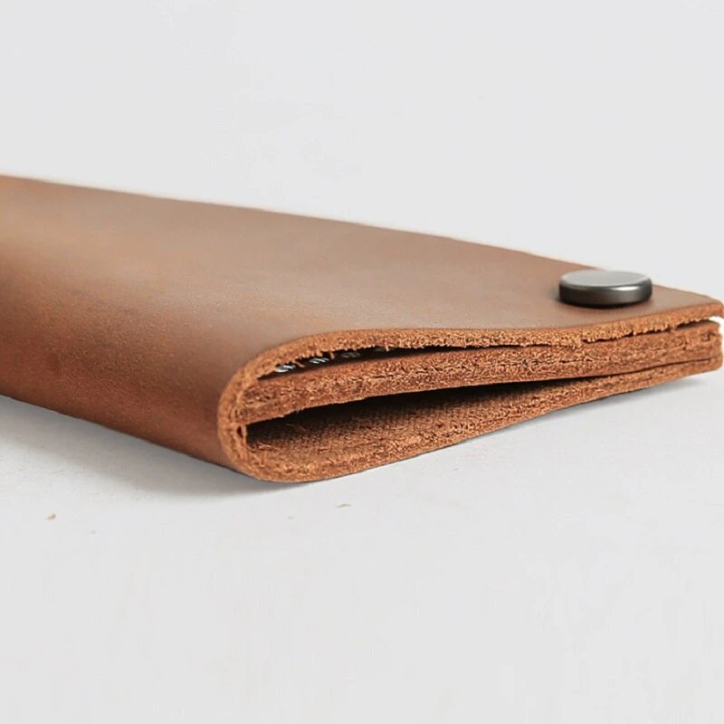 A high-quality, durable wallet made of genuine leather. Attached by a metal button, the wallet rotates, and the cover moves to the side for quick opening - so you can get what you need without dealing with stubborn zips. The wallet is simplistic and doesn't have too many pockets that make it bulky or hard to use. Different colors available.