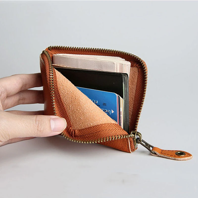 Crafted from genuine leather, this wallet is designed to withstand the test of time. With its convenient zipper closure, you can trust that your belongings will stay secure. Inside, you'll find a card holder interior and a convenient coin pocket, allowing you to keep all your essentials in one place. Upgrade your everyday carry with the sleek and functional leather wallet.