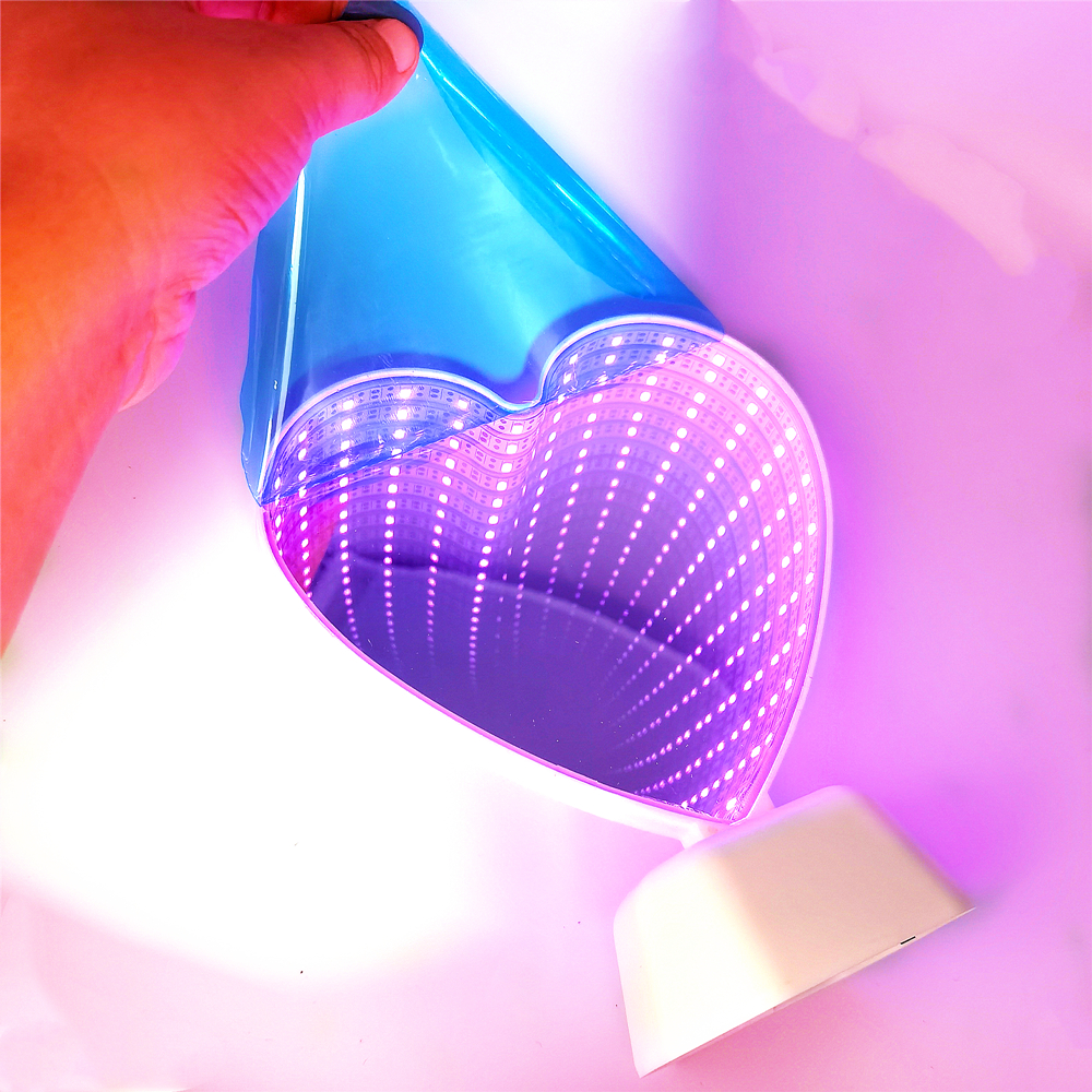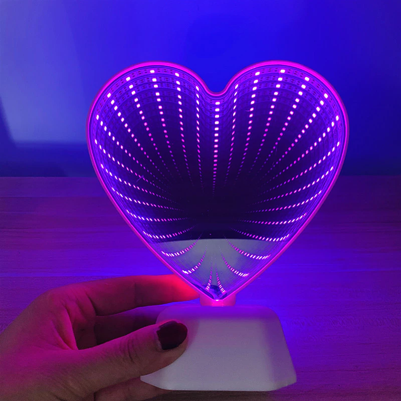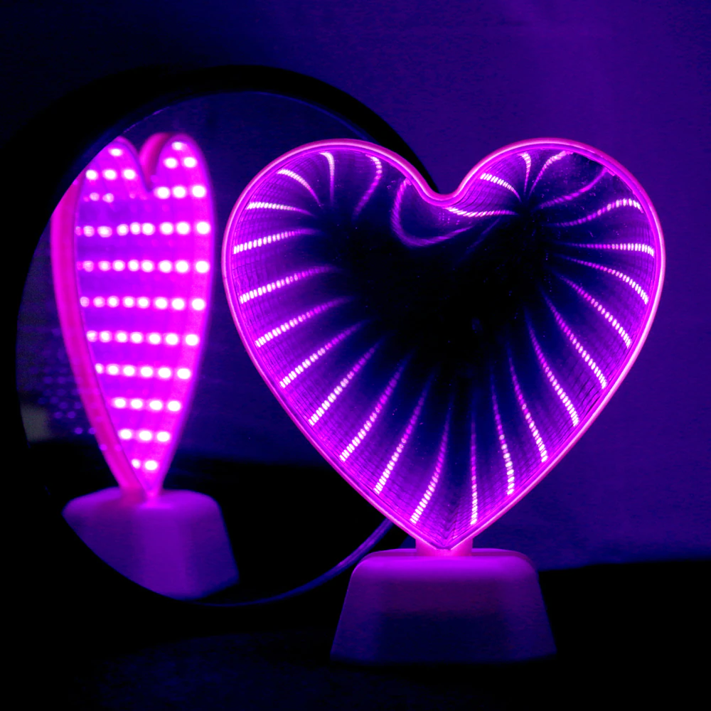 When turned off this lovely mirror is perfect for applying makeup or just to have on display, but turn it on and watch the optical mirror effect of the glowing heart reflection.