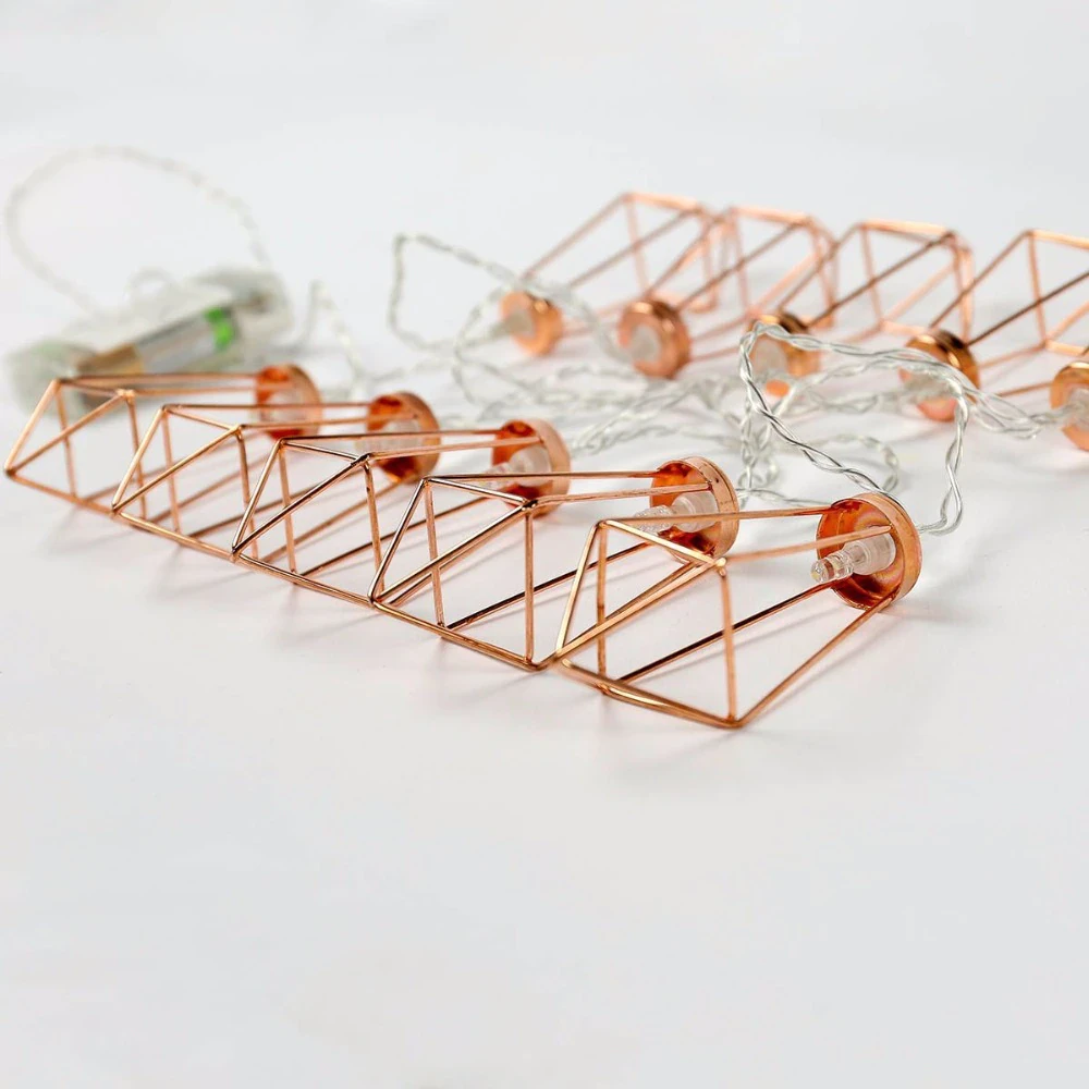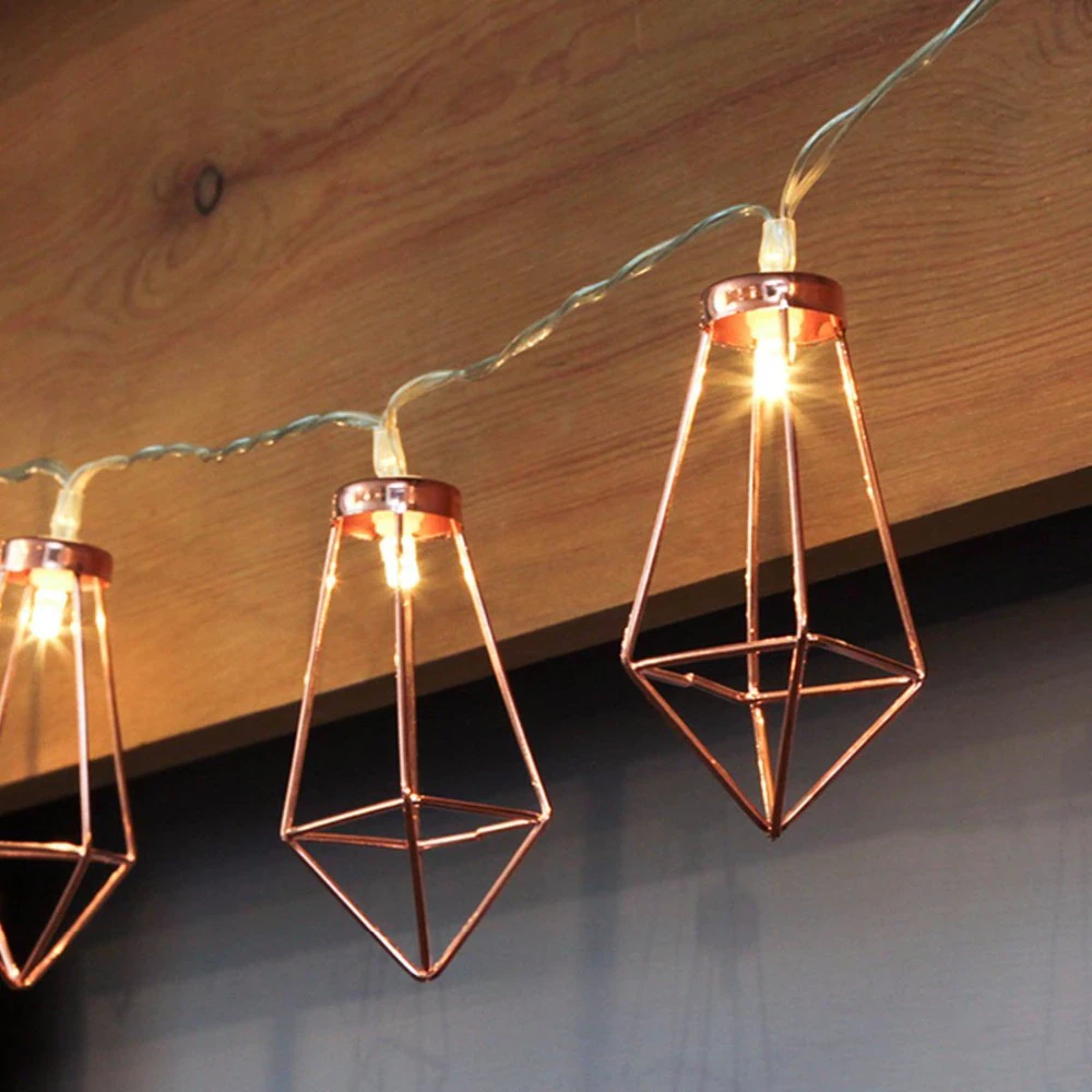 Each light is encased in a metal diamond to add a decorative element to your interior, perfect for draping from shelves within bedrooms or hanging from walls to add detail.