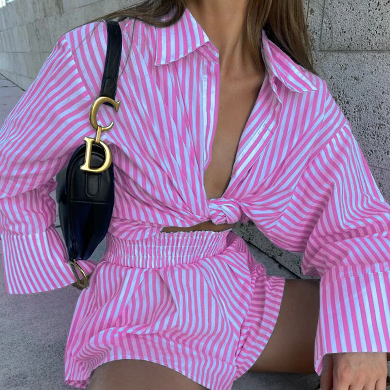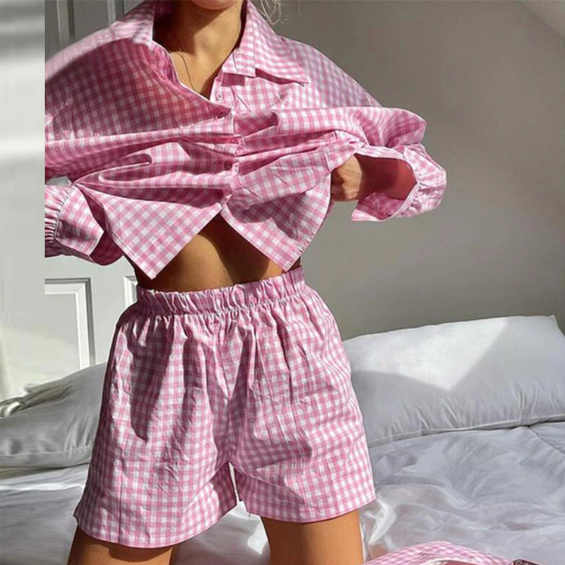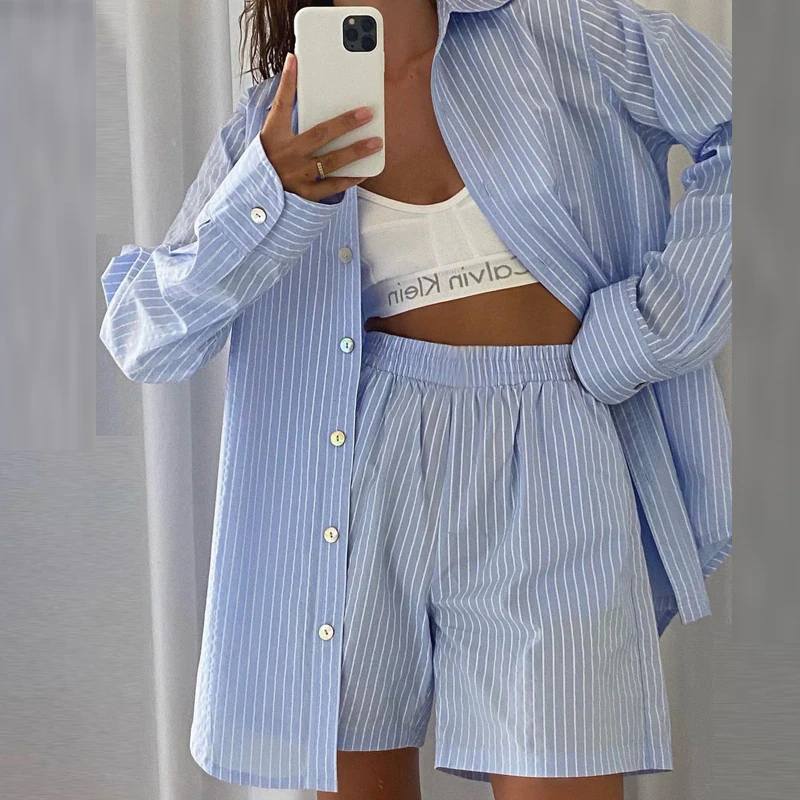 A stylish and easy to throw on outfit featuring an oversized button up shirt and loose fitting shorts.