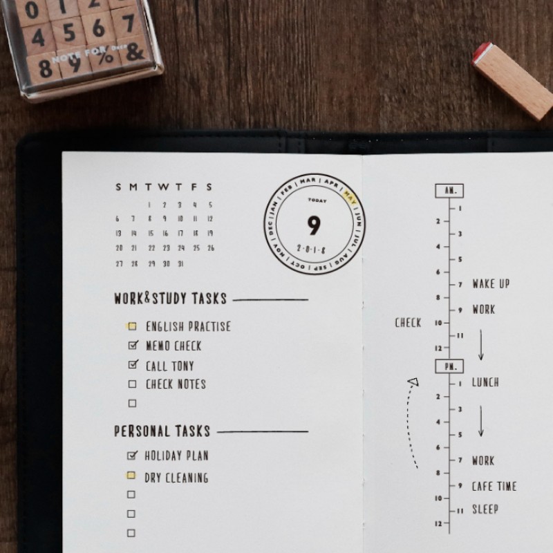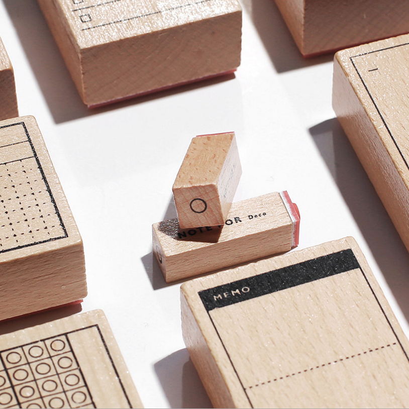 Made of wood and rubber, this stamp gives the perfect templates to save your time. Use at work or at home - this stamp is perfect for list-making, planning or organising files. This is a great alternative to purchasing notebooks or paper with templates. The stamp has a red rubber bottom and a smooth, light wooden top. Available in many different styles, including a clock template, an arrow and a checklist stamp