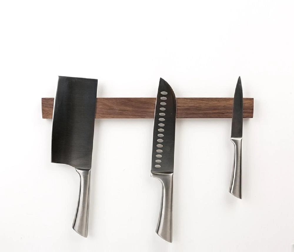 The bar has a wooden exterior that blends well with any interior style, plus a strong magnet that can hold even your heaviest chef knife or a cleaver.