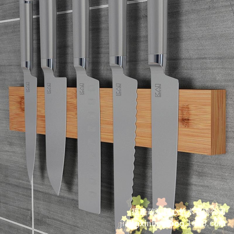 Keeping your kitchen tidy is easier with this magnetic wooden knife bar.
