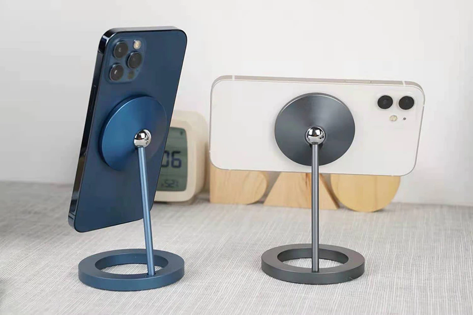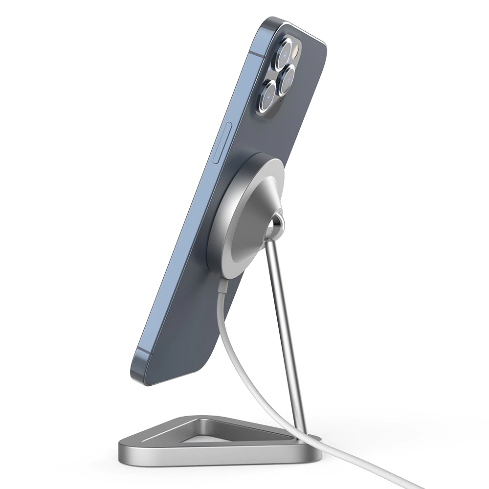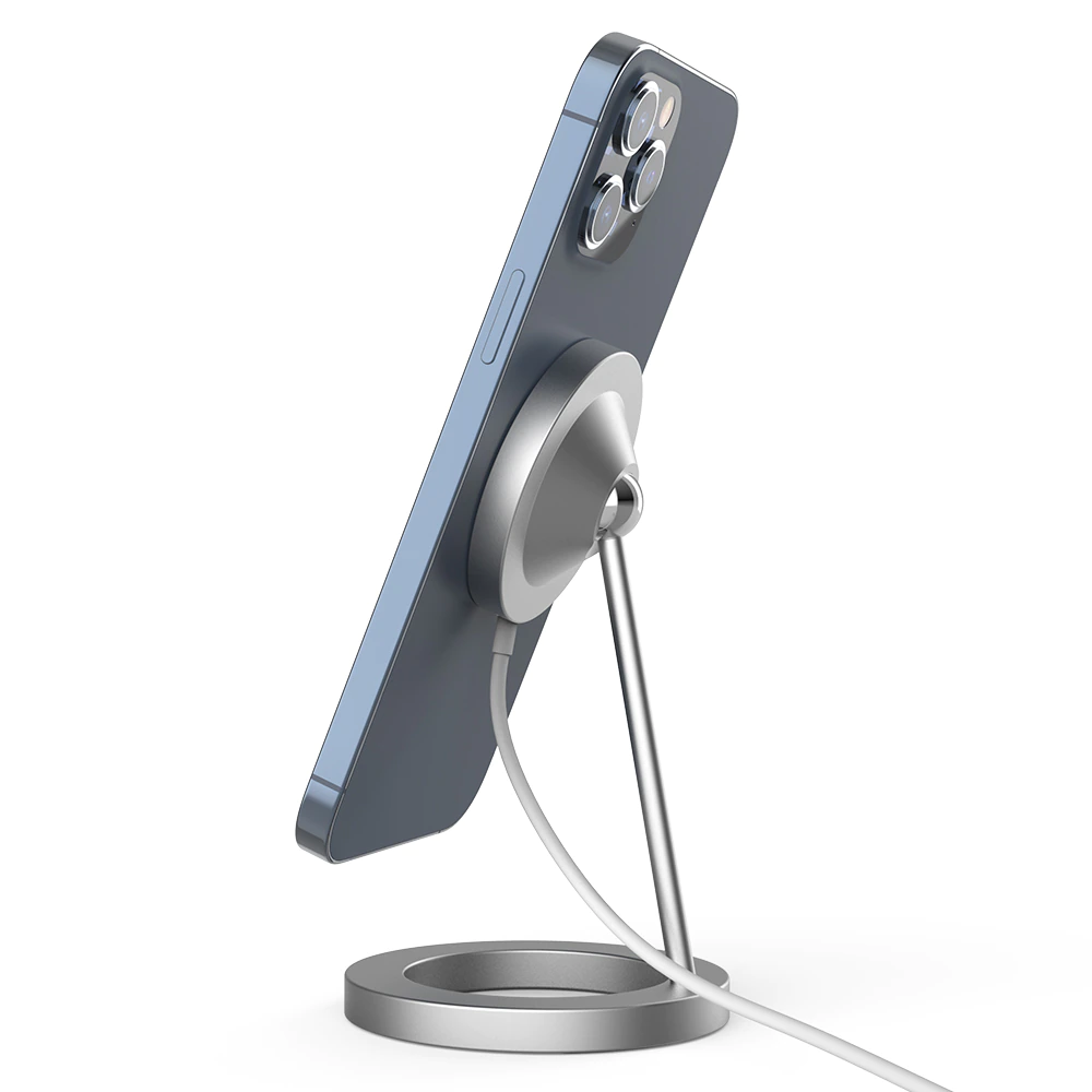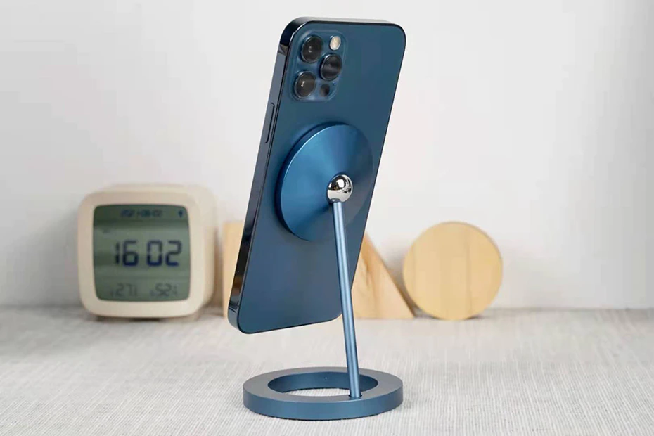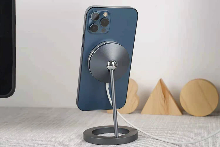 This MagSafe wireless charger comes with an adjustable stand and is compatible with the iPhone 12 series. The magnet ensures that your phone is securely latched, and you can also rotate the attachment by 360 degrees. The body is made of aluminum alloy body and comes in circle, square or triangle base shape. It includes a USB-C connection, and it comes with a non-slip bottom so you can attach it to your desktop. It works great as a space-saving phone stand when you're watching Netflix during your lunch break and would look great on any work desk or nightstand.