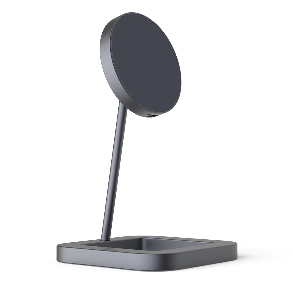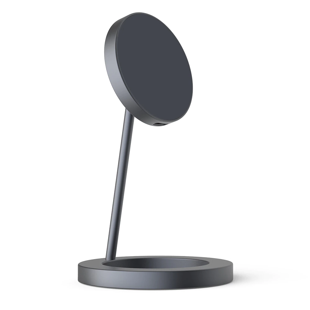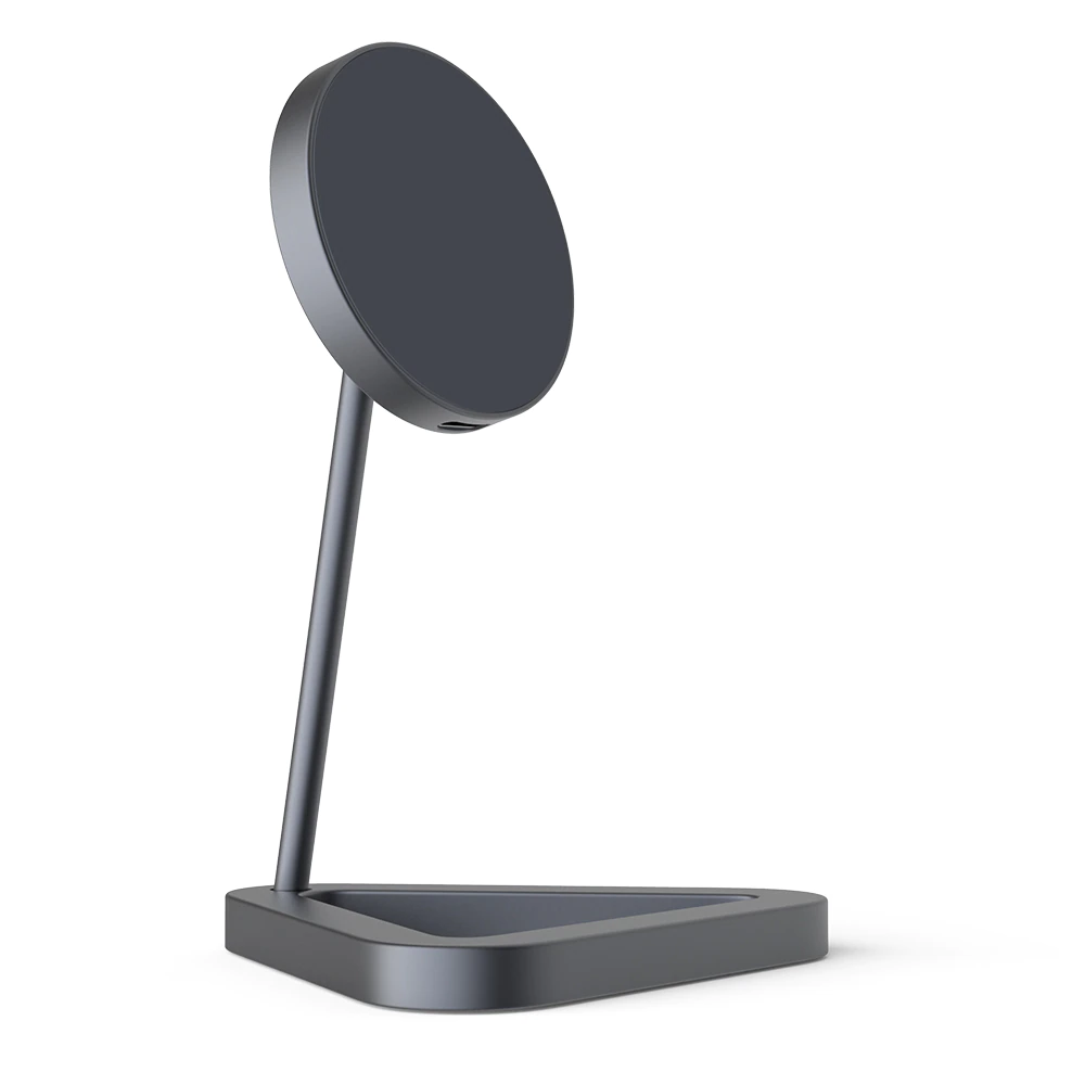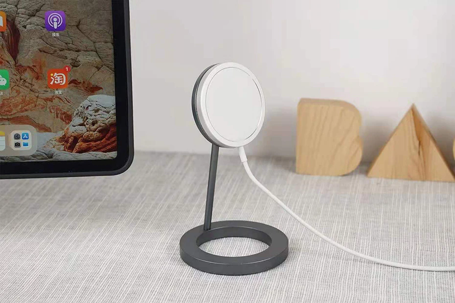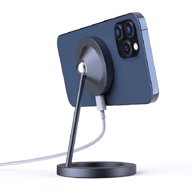 This MagSafe wireless charger comes with an adjustable stand and is compatible with the iPhone 12 series. The magnet ensures that your phone is securely latched, and you can also rotate the attachment by 360 degrees. The body is made of aluminum alloy body and comes in circle, square or triangle base shape. It includes a USB-C connection, and it comes with a non-slip bottom so you can attach it to your desktop. It works great as a space-saving phone stand when you're watching Netflix during your lunch break and would look great on any work desk or nightstand.