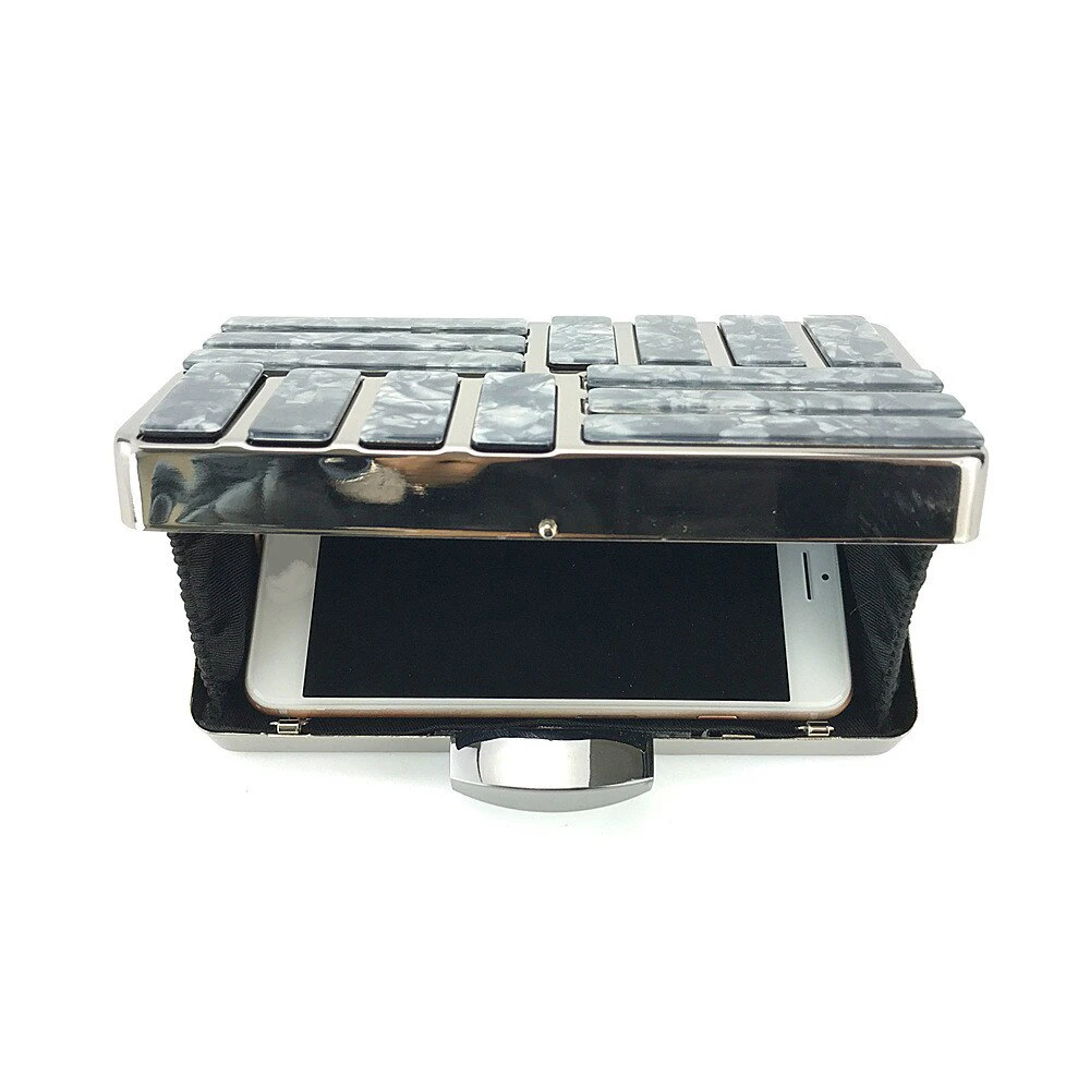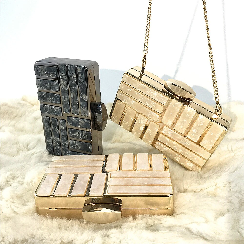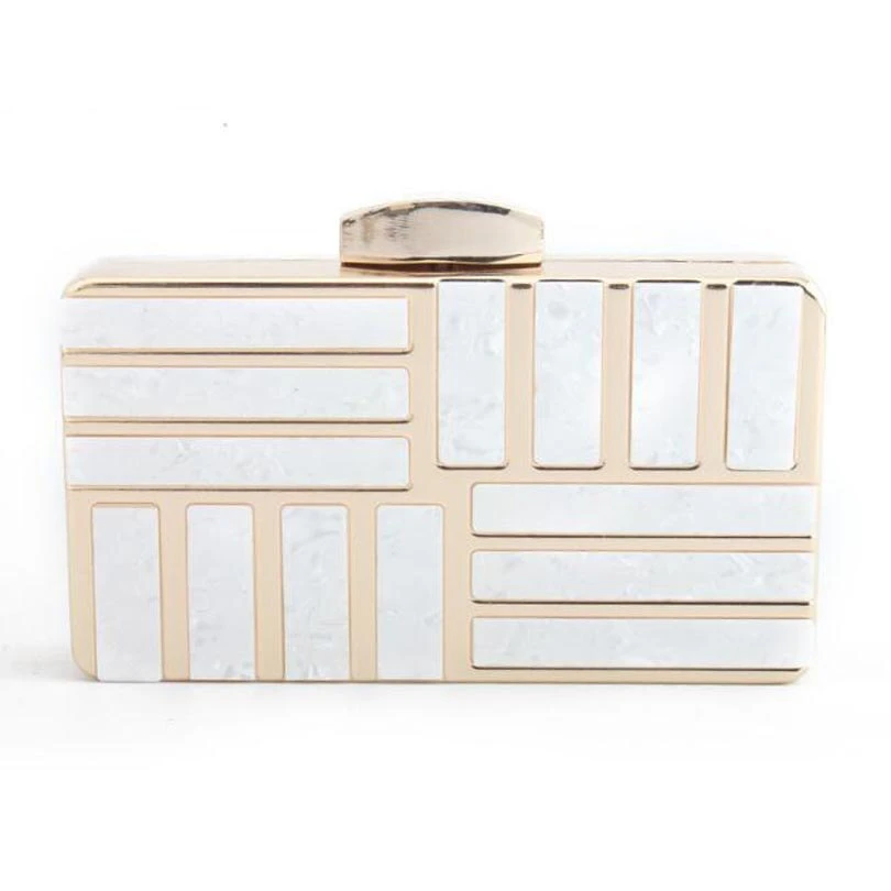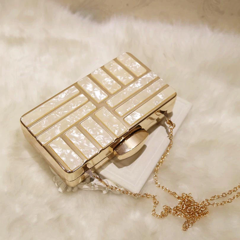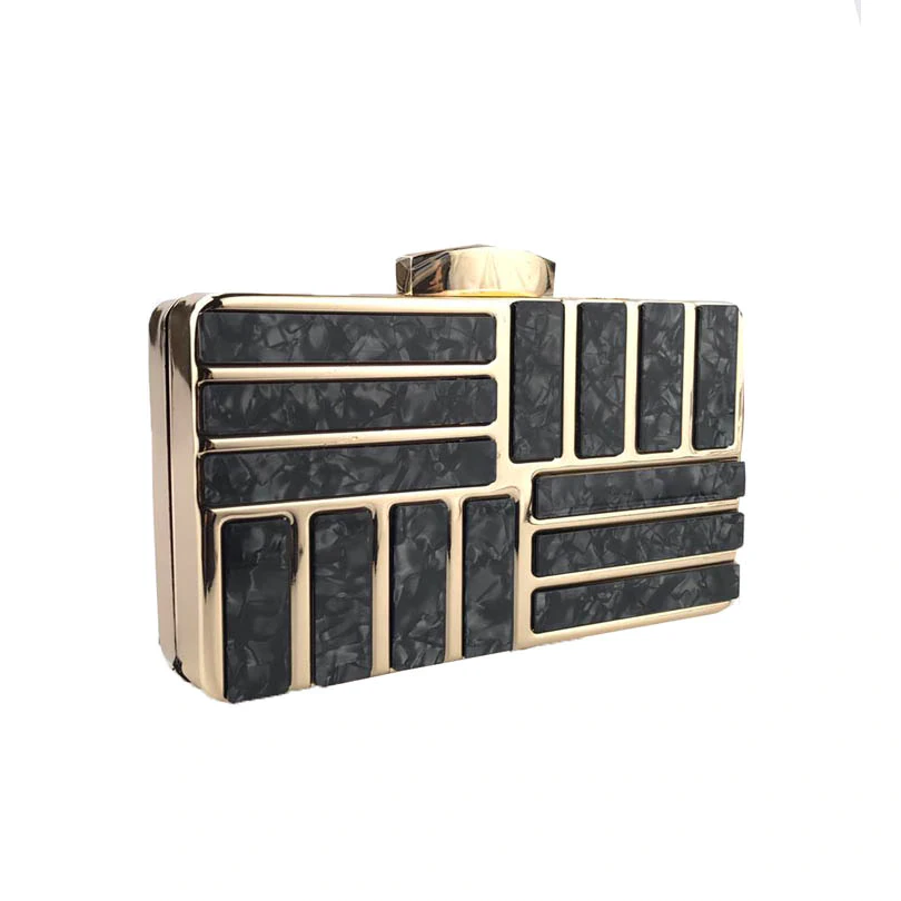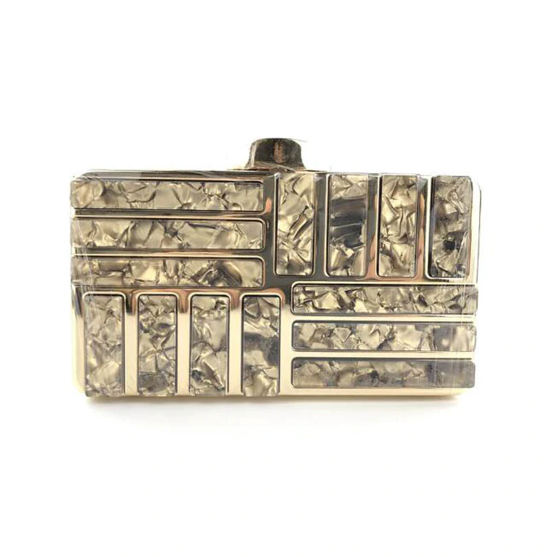 Add a touch of luxury to your evening outfit with this gorgeous gold clutch with marble detailing.