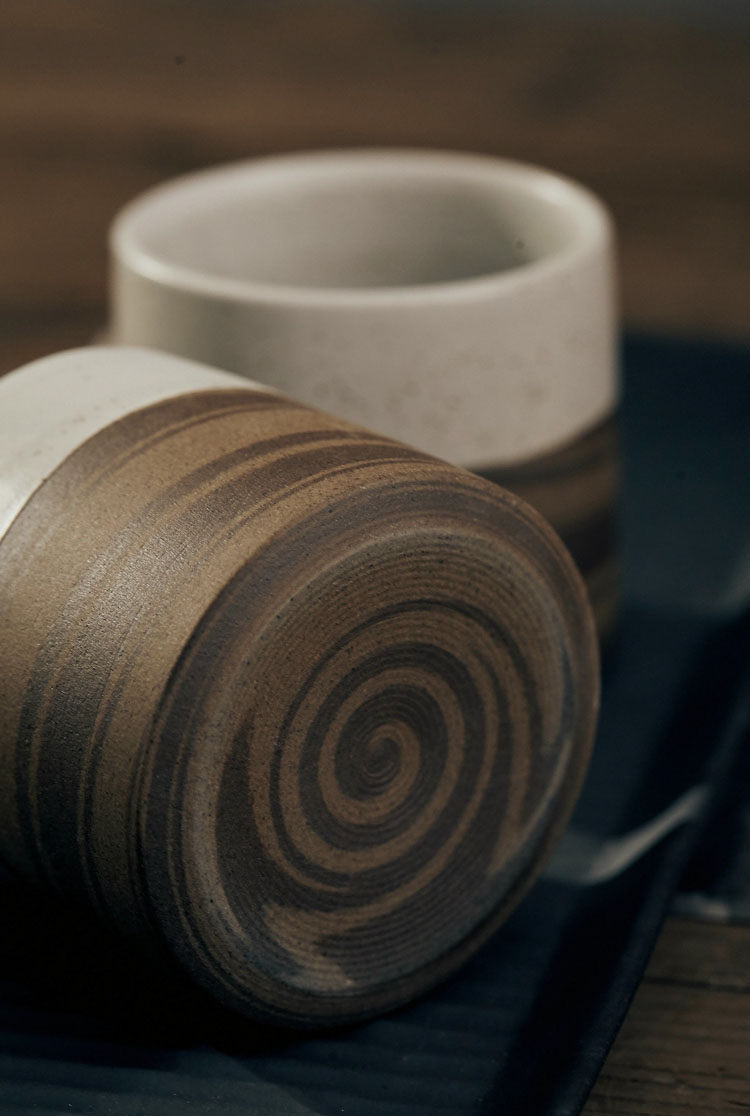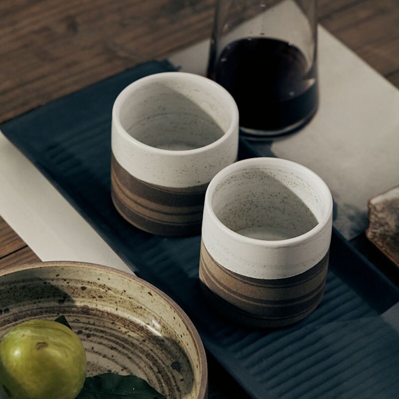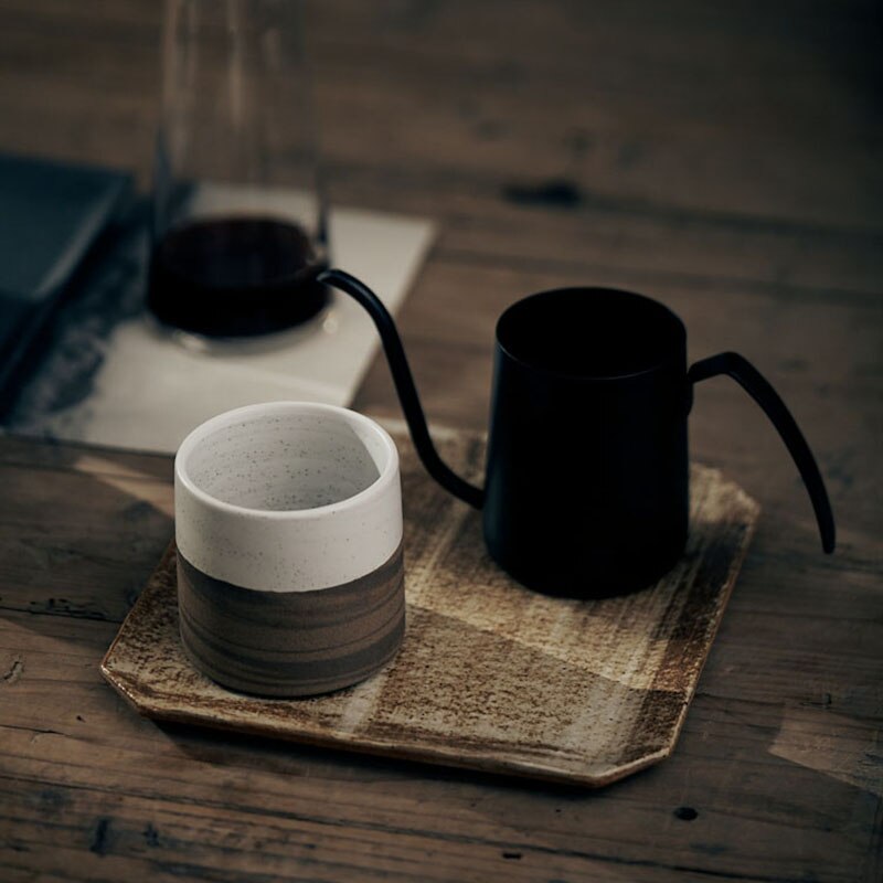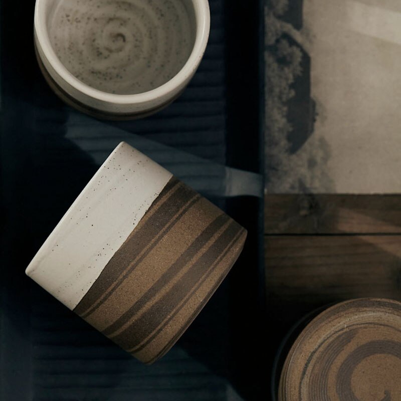 This handmade textured espresso or tea cup is an excellent addition to your coffee mug collection at home that you and your guests will appreciate. It features a two toned ceramic design and striking clean lines, along with a matte outer finish for a secure grip.