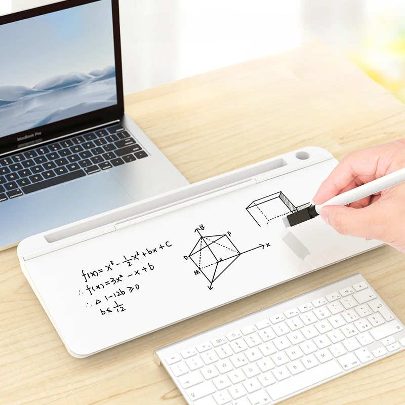 - Combines wrist rest with whiteboard